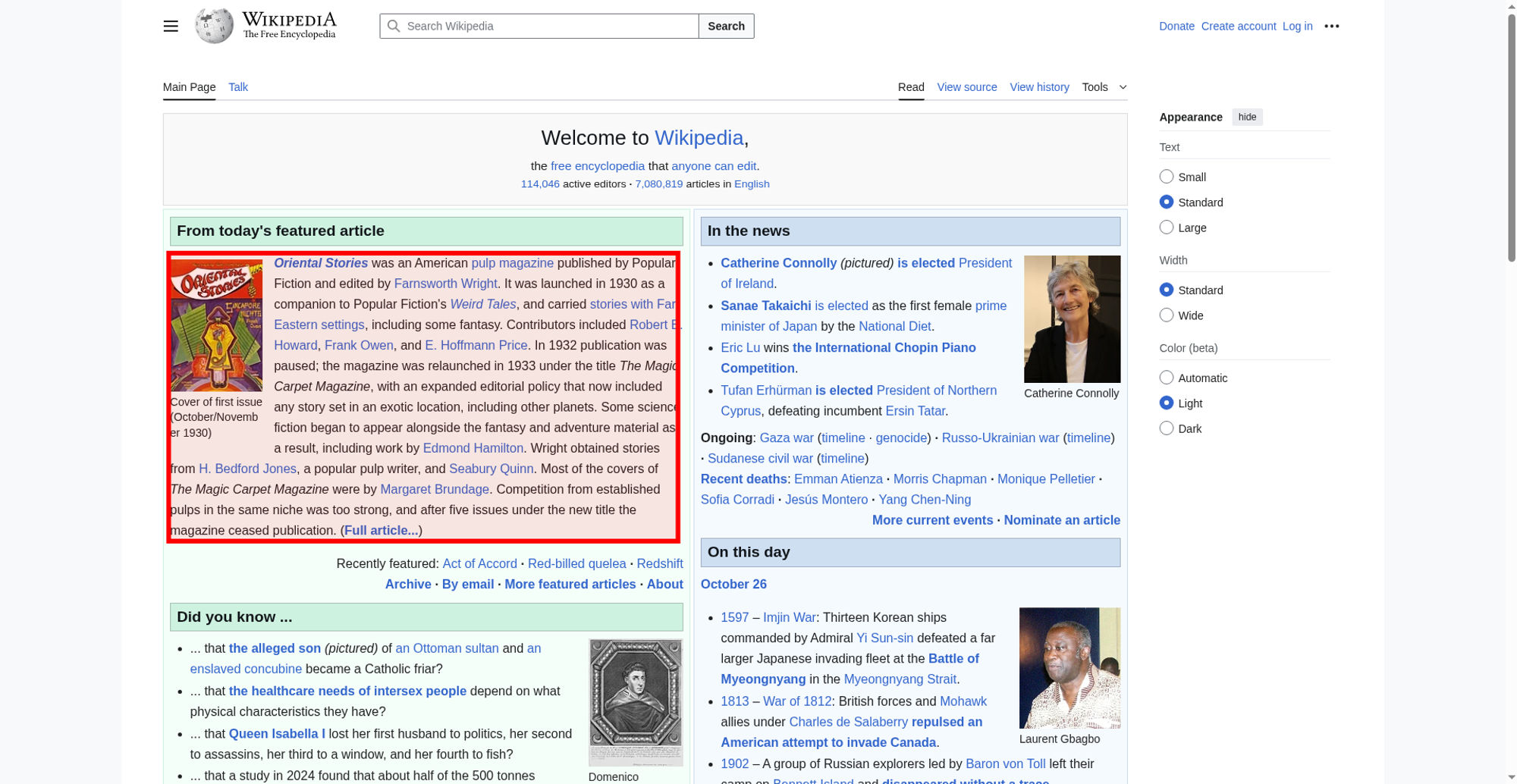 | Offenders: https://upload.wikimedia.org/wikipedia/commons/thumb/d/dc/Oriental_Stories_Octob...November_1930.jpg https://upload.wikimedia.org/wikipedia/commons/thumb/f/fd/Padre_Ottomano1bw.jpg/...e_Ottomano1bw.jpg https://upload.wikimedia.org/wikipedia/commons/thumb/2/2d/Catherine_Connolly%2C_...%28cropped%29.jpg https://upload.wikimedia.org/wikipedia/commons/thumb/0/08/Laurent_Gbagbo_%282008...bo_%282008%29.jpg https://upload.wikimedia.org/wikipedia/commons/thumb/b/b2/Gray-breasted_Partridg...idge_0A2A3088.jpg https://upload.wikimedia.org/wikipedia/en/thumb/4/4a/Commons-logo.svg/40px-Commons-logo.svg.png https://upload.wikimedia.org/wikipedia/commons/thumb/a/a6/MediaWiki-2020-icon.sv...2020-icon.svg.png https://upload.wikimedia.org/wikipedia/commons/thumb/7/75/Wikimedia_Community_Lo...nity_Logo.svg.png https://upload.wikimedia.org/wikipedia/commons/thumb/f/fa/Wikibooks-logo.svg/40p...ooks-logo.svg.png https://upload.wikimedia.org/wikipedia/commons/thumb/f/ff/Wikidata-logo.svg/60px...data-logo.svg.png https://upload.wikimedia.org/wikipedia/commons/thumb/2/24/Wikinews-logo.svg/60px...news-logo.svg.png https://upload.wikimedia.org/wikipedia/commons/thumb/f/fa/Wikiquote-logo.svg/40p...uote-logo.svg.png https://upload.wikimedia.org/wikipedia/commons/thumb/4/4c/Wikisource-logo.svg/40...urce-logo.svg.png https://upload.wikimedia.org/wikipedia/commons/thumb/d/df/Wikispecies-logo.svg/4...cies-logo.svg.png https://upload.wikimedia.org/wikipedia/commons/thumb/0/0b/Wikiversity_logo_2017....logo_2017.svg.png https://upload.wikimedia.org/wikipedia/commons/thumb/d/dd/Wikivoyage-Logo-v3-ico...o-v3-icon.svg.png https://upload.wikimedia.org/wikipedia/en/thumb/0/06/Wiktionary-logo-v2.svg/40px...y-logo-v2.svg.png https://upload.wikimedia.org/wikipedia/commons/thumb/e/ec/Wiktionary-logo.svg/60...nary-logo.svg.png https://en.wikipedia.org/wiki/Special:CentralAutoLogin/start?useformat=desktop&type=script&usesul3=1 https://auth.wikimedia.org/metawiki/wiki/Special:CentralAutoLogin/checkLoggedIn...gin/checkLoggedIn |