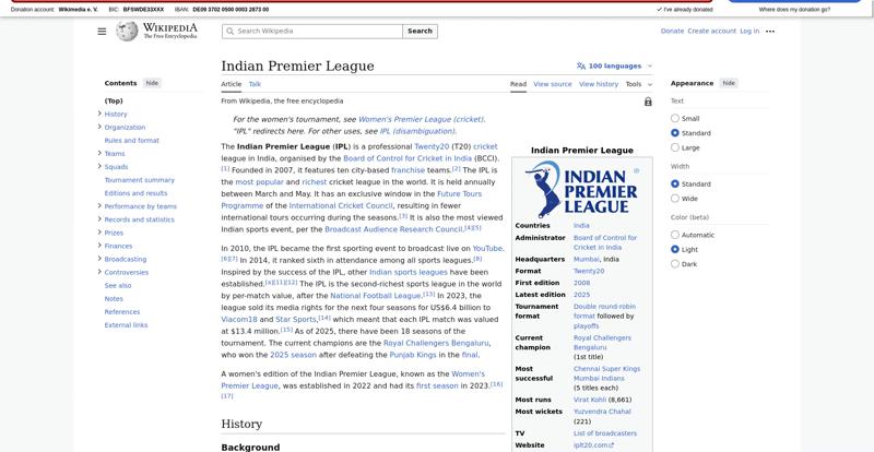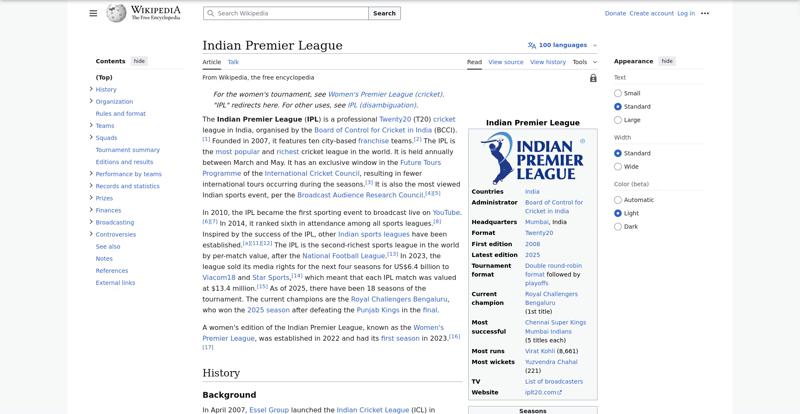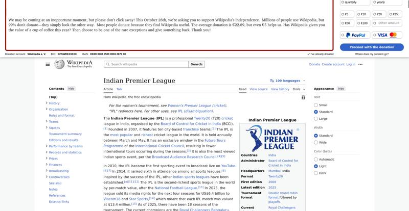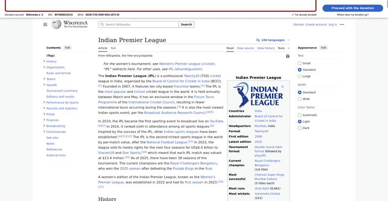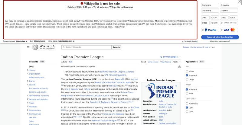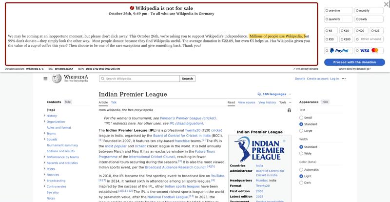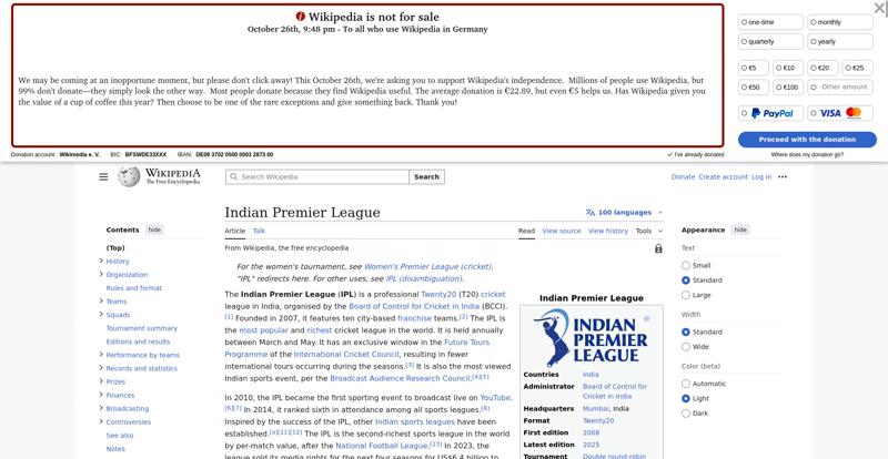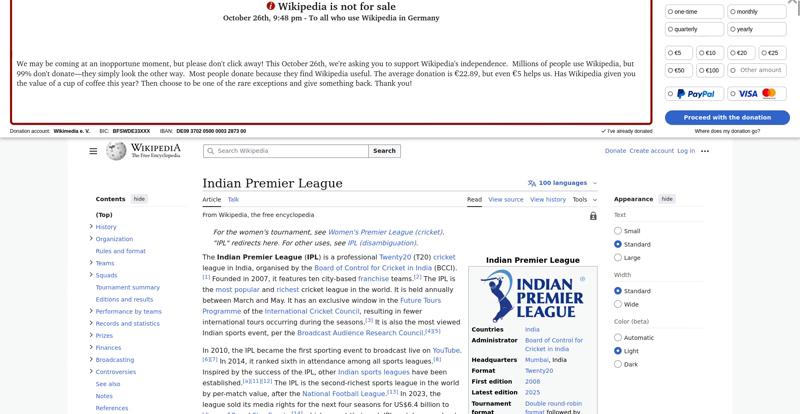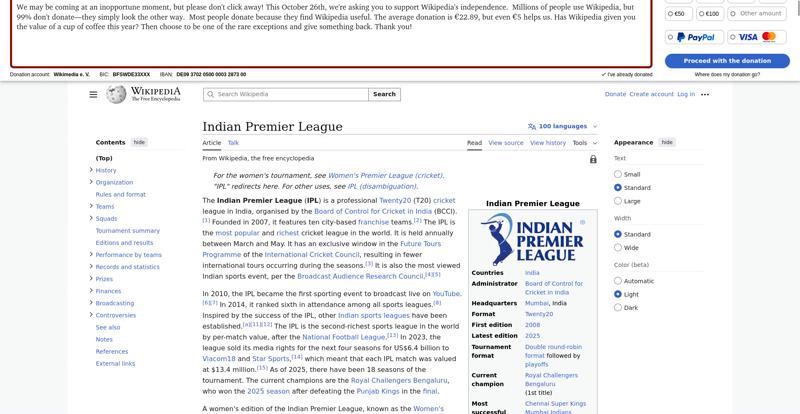| Offenders: https://en.wikipedia.org/wiki/Indian_Premier_League https://meta.wikimedia.org/w/index.php...a.org/w/index.php |