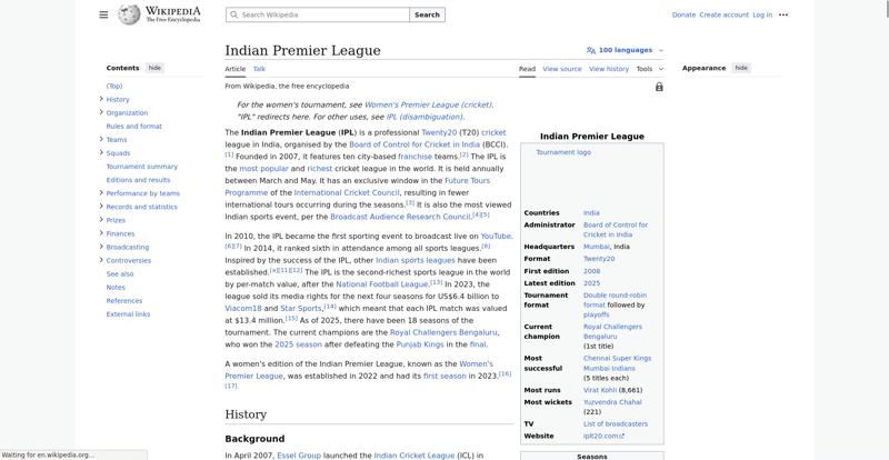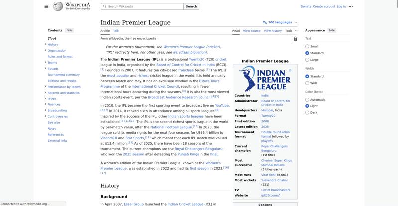 | Offenders: https://upload.wikimedia.org/wikipedia/en/thumb/1/1b/Semi-protection-shackle.svg...n-shackle.svg.png https://upload.wikimedia.org/wikipedia/en/thumb/8/84/Indian_Premier_League_Offic...cial_Logo.svg.png https://upload.wikimedia.org/wikipedia/commons/thumb/6/67/IPL_T20_Chennai_vs_Kol...ai_vs_Kolkata.JPG https://upload.wikimedia.org/wikipedia/commons/thumb/d/dc/India_location_map.svg...ation_map.svg.png https://upload.wikimedia.org/wikipedia/commons/thumb/0/0c/Red_pog.svg/20px-Red_pog.svg.png https://upload.wikimedia.org/wikipedia/en/timeline/eyo0ptsk3t8q1umg7prwx9qyznuriqh.png https://upload.wikimedia.org/wikipedia/en/thumb/4/41/Flag_of_India.svg/40px-Flag_of_India.svg.png https://upload.wikimedia.org/wikipedia/en/thumb/b/be/Flag_of_England.svg/40px-Fl...f_England.svg.png https://upload.wikimedia.org/wikipedia/commons/thumb/3/3e/Flag_of_New_Zealand.sv...w_Zealand.svg.png https://upload.wikimedia.org/wikipedia/commons/thumb/1/18/WestIndiesCricketFlagP...agPre1999.svg.png https://upload.wikimedia.org/wikipedia/commons/thumb/8/88/Flag_of_Australia_%28c...verted%29.svg.png https://upload.wikimedia.org/wikipedia/commons/thumb/a/af/Flag_of_South_Africa.s...th_Africa.svg.png https://upload.wikimedia.org/wikipedia/commons/thumb/4/44/Virat_Kohli_with_AudiQ...i_with_AudiQ7.png https://upload.wikimedia.org/wikipedia/commons/thumb/d/df/Yuzvendra_Chahal_in_PM...PMO_New_Delhi.jpg https://upload.wikimedia.org/wikipedia/commons/thumb/f/f4/Tata_IPL_EDEN_47th_Mat...KKR_vs_SRH_02.png https://upload.wikimedia.org/wikipedia/commons/thumb/b/b0/Cricketball.png/40px-Cricketball.png https://upload.wikimedia.org/wikipedia/en/thumb/4/4a/Commons-logo.svg/40px-Commons-logo.svg.png https://upload.wikimedia.org/wikipedia/en/thumb/9/96/Symbol_category_class.svg/2...ory_class.svg.png https://upload.wikimedia.org/wikipedia/en/thumb/4/4a/Commons-logo.svg/20px-Commons-logo.svg.png https://upload.wikimedia.org/wikipedia/commons/thumb/c/cd/Cricket_pictogram.svg/...pictogram.svg.png https://upload.wikimedia.org/wikipedia/commons/thumb/b/bf/CLT20.svg/120px-CLT20.svg.png https://upload.wikimedia.org/wikipedia/en/thumb/8/8a/OOjs_UI_icon_edit-ltr-progr...ogressive.svg.png https://upload.wikimedia.org/wikipedia/commons/4/4d/Icon_pdf_file.png https://upload.wikimedia.org/wikipedia/commons/a/aa/Lock-red-alt-2.svg https://upload.wikimedia.org/wikipedia/commons/6/65/Lock-green.svg https://en.wikipedia.org/wiki/Special:CentralAutoLogin/start?useformat=desktop&type=script&usesul3=1 https://auth.wikimedia.org/metawiki/wiki/Special:CentralAutoLogin/checkLoggedIn...gin/checkLoggedIn |