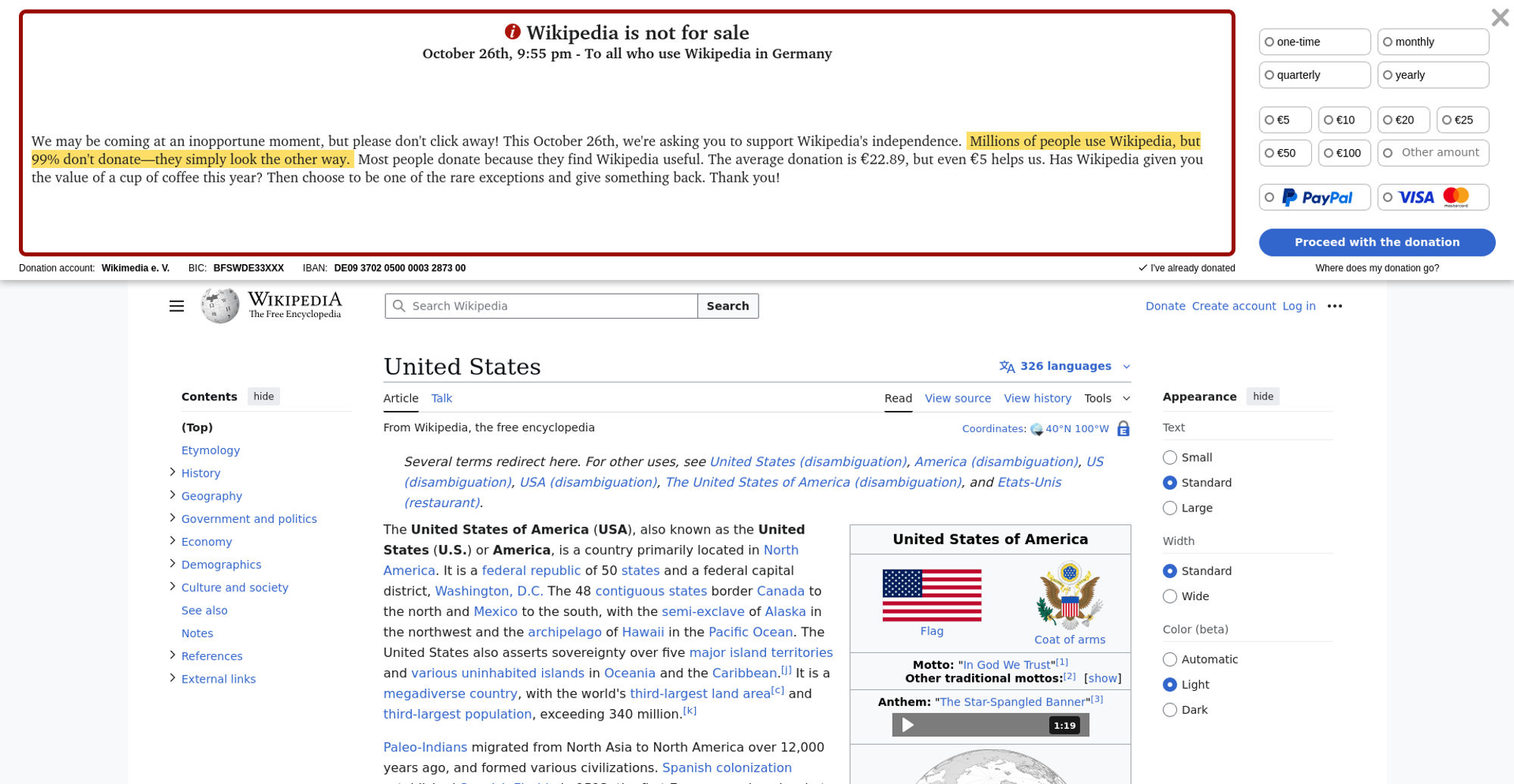 | Offenders: https://en.wikipedia.org/wiki/United_States https://meta.wikimedia.org/w/index.php...a.org/w/index.php |