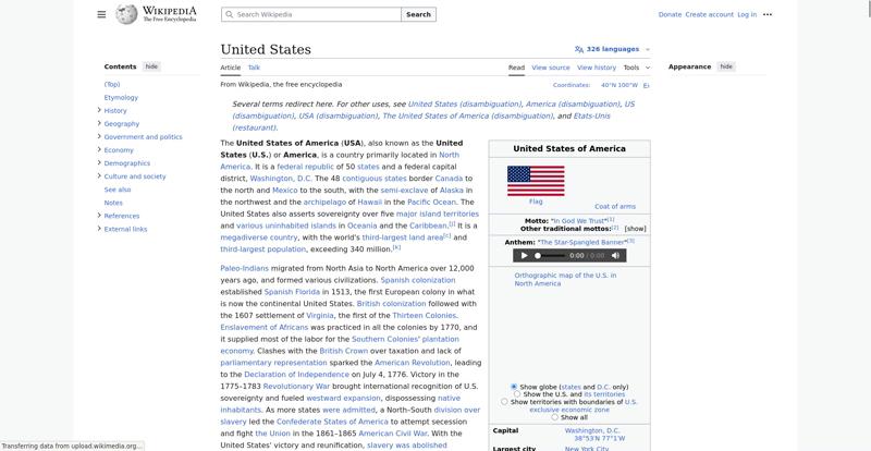 | Offenders: https://en.wikipedia.org/static/images/mobile/copyright/wikipedia-wordmark-en.svg https://en.wikipedia.org/static/images/mobile/copyright/wikipedia-tagline-en.svg https://upload.wikimedia.org/wikipedia/commons/thumb/9/96/Flag_of_the_United_Sta...ations%29.svg.png https://upload.wikimedia.org/wikipedia/commons/thumb/7/77/K%C3%B6ppen_Climate_Ty...e_Types_US_50.png https://upload.wikimedia.org/wikipedia/commons/thumb/f/f3/January_2025_Official_...t_of_JD_Vance.jpg https://upload.wikimedia.org/wikipedia/commons/thumb/a/a4/Map_of_USA_with_state_...itory_names_2.png |