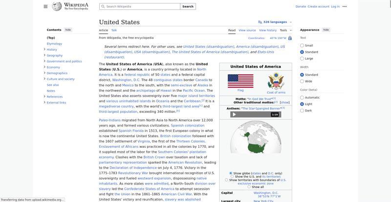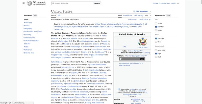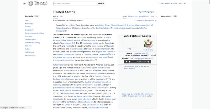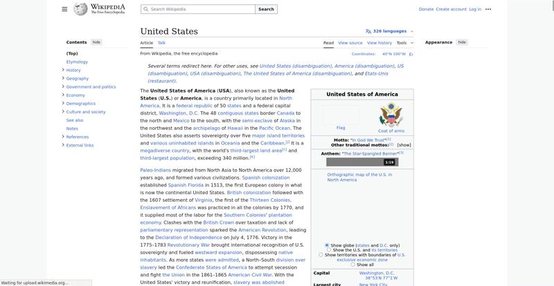 | Offenders: https://en.wikipedia.org/static/images/mobile/copyright/wikipedia-wordmark-en.svg https://en.wikipedia.org/static/images/mobile/copyright/wikipedia-tagline-en.svg https://upload.wikimedia.org/wikipedia/commons/thumb/9/96/Flag_of_the_United_Sta...ations%29.svg.png https://upload.wikimedia.org/wikipedia/commons/thumb/7/77/K%C3%B6ppen_Climate_Ty...e_Types_US_50.png https://upload.wikimedia.org/wikipedia/commons/thumb/f/f3/January_2025_Official_...t_of_JD_Vance.jpg https://upload.wikimedia.org/wikipedia/commons/thumb/a/a4/Map_of_USA_with_state_...itory_names_2.png |