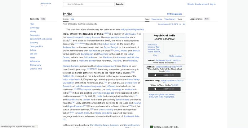 | Offenders: https://upload.wikimedia.org/wikipedia/en/thumb/e/e7/Cscr-featured.svg/20px-Cscr-featured.svg.png https://upload.wikimedia.org/wikipedia/en/thumb/8/8c/Extended-protection-shackle...n-shackle.svg.png https://upload.wikimedia.org/wikipedia/en/thumb/4/41/Flag_of_India.svg/250px-Flag_of_India.svg.png https://upload.wikimedia.org/wikipedia/commons/thumb/5/55/Emblem_of_India.svg/60..._of_India.svg.png https://upload.wikimedia.org/wikipedia/commons/thumb/7/74/Increase_Neutral.svg/2...e_Neutral.svg.png https://upload.wikimedia.org/wikipedia/commons/thumb/b/b0/Increase2.svg/20px-Increase2.svg.png https://upload.wikimedia.org/wikipedia/commons/thumb/b/bb/India_%28orthographic_...ection%29.svg.png https://upload.wikimedia.org/wikipedia/commons/thumb/9/92/Decrease_Positive.svg/..._Positive.svg.png https://upload.wikimedia.org/wikipedia/commons/thumb/e/ee/Hathigumpha_inscriptio...on_%282020%29.jpg https://upload.wikimedia.org/wikipedia/commons/thumb/a/a7/Battle_at_Lanka%2C_Ram...ur%2C_1649-53.jpg https://upload.wikimedia.org/wikipedia/commons/thumb/a/a4/Cave_26%2C_Ajanta.jpg/..._26%2C_Ajanta.jpg https://upload.wikimedia.org/wikipedia/commons/thumb/d/de/Gopuram_Corner_View_of...swara_Temple..JPG https://upload.wikimedia.org/wikipedia/commons/thumb/3/31/Qutb_minar_ruins.jpg/2...b_minar_ruins.jpg https://upload.wikimedia.org/wikipedia/commons/thumb/7/7c/Agra_Fort_DistantTaj.J...rt_DistantTaj.JPG https://upload.wikimedia.org/wikipedia/commons/thumb/7/75/India_1835_2_Mohurs.jp...1835_2_Mohurs.jpg https://upload.wikimedia.org/wikipedia/commons/thumb/3/36/British_Indian_Empire_...teer_of_India.jpg https://upload.wikimedia.org/wikipedia/commons/thumb/a/a2/Nehru_Ghandi_AP_180505...%28cropped%29.jpg https://upload.wikimedia.org/wikipedia/commons/thumb/1/19/Tungabhadra_River_and_...Coracle_Boats.JPG https://upload.wikimedia.org/wikipedia/commons/thumb/1/1e/Parked_boats_at_Anjarl...Anjarle_Creek.jpg https://upload.wikimedia.org/wikipedia/commons/thumb/5/51/Munnar_25-10-10_13-52-..._13-52-43-764.jpg https://upload.wikimedia.org/wikipedia/commons/thumb/d/da/Panthera_tigris_tigris...doba_20150306.jpg https://upload.wikimedia.org/wikipedia/commons/thumb/3/36/Axis_axis_%28Nagarhole...le%2C_2010%29.jpg https://upload.wikimedia.org/wikipedia/commons/thumb/d/d1/Maharajah_Ramanuj_Prat...ill_1948_BNHS.jpg https://upload.wikimedia.org/wikipedia/commons/thumb/5/59/Rajagopal_speaking_to_...2007%2C_India.jpg https://upload.wikimedia.org/wikipedia/commons/thumb/c/c6/Barack_Obama_at_Parlia...h_houses_2010.jpg https://upload.wikimedia.org/wikipedia/commons/thumb/2/24/Rashtrapati_Bhavan_Wid...w_Delhi_India.jpg https://upload.wikimedia.org/wikipedia/commons/thumb/b/b8/Political_map_of_India..._India_EN.svg.png https://upload.wikimedia.org/wikipedia/commons/thumb/0/0a/Jawaharlal_Nehru%2C_Na...d_in_Belgrade.jpg https://upload.wikimedia.org/wikipedia/commons/thumb/9/9e/Indian_Air_Force_conti...ly_14%2C_2009.jpg https://upload.wikimedia.org/wikipedia/commons/thumb/8/88/Plowing_the_land_in_In...d_traditional.jpg https://upload.wikimedia.org/wikipedia/commons/thumb/b/ba/ILRI%2C_Stevie_Mann_-_...than%2C_India.jpg https://upload.wikimedia.org/wikipedia/commons/thumb/a/a1/Women_at_work%2C_Gujar...%28cropped%29.jpg https://upload.wikimedia.org/wikipedia/commons/thumb/f/fb/Cherry_Resort_inside_T...chi%2C_Sikkim.jpg https://upload.wikimedia.org/wikipedia/commons/thumb/8/8f/Female_health_workers_...4332433890%29.jpg https://upload.wikimedia.org/wikipedia/commons/thumb/4/41/Sikh_pilgrim_at_the_Go...tsar%2C_India.jpg https://upload.wikimedia.org/wikipedia/commons/thumb/e/e2/Interior_of_San_Thome_...home_Basilica.jpg https://upload.wikimedia.org/wikipedia/commons/thumb/d/d0/47_Raika_School_-_eati...3384824242%29.jpg https://upload.wikimedia.org/wikipedia/commons/thumb/c/c7/Muslims_praying_in_mos...ar%2C_Kashmir.jpg https://upload.wikimedia.org/wikipedia/commons/thumb/b/b7/Bhutesvara_Yakshis_Mat...tury_CE_front.jpg https://upload.wikimedia.org/wikipedia/commons/thumb/3/31/MET_DT5237_%28cropped%...%28cropped%29.jpg https://upload.wikimedia.org/wikipedia/commons/thumb/c/c3/Elephanta_Caves_%28278...%28cropped%29.jpg https://upload.wikimedia.org/wikipedia/commons/thumb/b/b0/Shiva_as_Lord_of_the_D...28Nataraja%29.jpg https://upload.wikimedia.org/wikipedia/commons/thumb/0/07/Jahangir_Receives_Prin...ewar_Campaign.jpg https://upload.wikimedia.org/wikipedia/commons/thumb/c/cf/Unknown%2C_Kangra%2C_I...e_Art_Project.jpg https://upload.wikimedia.org/wikipedia/commons/thumb/7/76/India_School.jpg/250px-India_School.jpg https://upload.wikimedia.org/wikipedia/commons/thumb/1/13/Strolling_Shoppers_in_...Paltan_Bazaar.jpg https://upload.wikimedia.org/wikipedia/commons/thumb/9/98/South_Indian_Thali_Cro...Thali_Cropped.jpg https://upload.wikimedia.org/wikipedia/commons/thumb/8/81/Making_Khameeri_Roti_i...ld_Delhi.webm.jpg https://upload.wikimedia.org/wikipedia/commons/thumb/1/1d/Filles_jouant_%C3%A0_l...Jaura%2C_Inde.jpg https://upload.wikimedia.org/wikipedia/en/thumb/0/06/Wiktionary-logo-v2.svg/40px...y-logo-v2.svg.png https://upload.wikimedia.org/wikipedia/en/thumb/4/4a/Commons-logo.svg/20px-Commons-logo.svg.png https://upload.wikimedia.org/wikipedia/commons/thumb/2/24/Wikinews-logo.svg/40px...news-logo.svg.png https://upload.wikimedia.org/wikipedia/commons/thumb/f/fa/Wikiquote-logo.svg/40p...uote-logo.svg.png https://upload.wikimedia.org/wikipedia/commons/thumb/4/4c/Wikisource-logo.svg/40...urce-logo.svg.png https://upload.wikimedia.org/wikipedia/commons/thumb/f/fa/Wikibooks-logo.svg/40p...ooks-logo.svg.png https://upload.wikimedia.org/wikipedia/commons/thumb/0/0b/Wikiversity_logo_2017....logo_2017.svg.png https://upload.wikimedia.org/wikipedia/commons/thumb/d/dd/Wikivoyage-Logo-v3-ico...o-v3-icon.svg.png https://upload.wikimedia.org/wikipedia/commons/thumb/7/74/Internet-web-browser.s...b-browser.svg.png https://upload.wikimedia.org/wikipedia/commons/thumb/b/b0/Openstreetmap_logo.svg...tmap_logo.svg.png https://upload.wikimedia.org/wikipedia/en/thumb