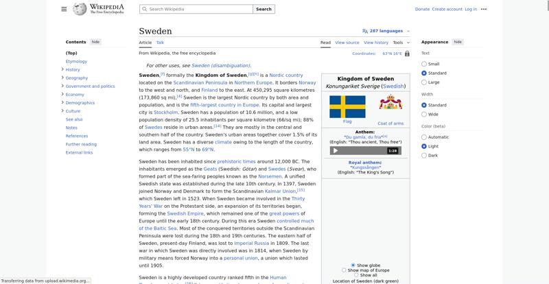 | Offenders: https://en.wikipedia.org/static/images/mobile/copyright/wikipedia-wordmark-en.svg https://en.wikipedia.org/static/images/mobile/copyright/wikipedia-tagline-en.svg https://upload.wikimedia.org/wikipedia/en/thumb/4/4c/Flag_of_Sweden.svg/250px-Flag_of_Sweden.svg.png https://upload.wikimedia.org/wikipedia/commons/thumb/e/e3/Sweden_Vegetation_Zone...etation_Zones.jpg |
