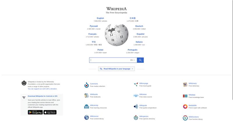 | <img class="central-featured-logo" src="portal/wikipedia.org/assets/img/Wikipedia-logo-v2.png" srcset="portal/wikipedia.org/assets/img/Wikipedia-logo-v2@1.5x.png 1.5x, portal/wikipedia.org/assets/img/Wikipedia-logo-v2@2x.png 2x" width="200" height="183" alt=""> | |||||