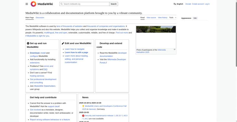 | <img src="//upload.wikimedia.org/wikipedia/commons/thumb/e/e4/Wikimedia_Hackathon_2025_Group_photo_from_drone.jpg/330px-Wikimedia_Hackathon_2025_Group_photo_from_drone.jpg" decoding="async" width="320" height="180" class="mw-file-element" srcset="//upload.wikimedia.org/wikipedia/commons/thumb/e/e4/Wikimedia_Hackathon_2025_Group_photo_from_drone.jpg/500px-Wikimedia_Hackathon_2025_Group_photo_from_drone.jpg 1.5x, //upload.wikimedia.org/wikipedia/commons/thumb/e/e4/Wikimedia_Hackathon_2025_Group_photo_from_drone.jpg/960px-Wikimedia_Hackathon_2025_Group_photo_from_drone.jpg 2x" data-file-width="3775" data-file-height="2119"> | |||||
