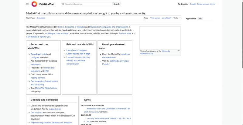 | <img src="//upload.wikimedia.org/wikipedia/commons/thumb/e/e4/Wikimedia_Hackathon_2025_Group_photo_from_drone.jpg/330px-Wikimedia_Hackathon_2025_Group_photo_from_drone.jpg" decoding="async" width="320" height="180" class="mw-file-element" srcset="//upload.wikimedia.org/wikipedia/commons/thumb/e/e4/Wikimedia_Hackathon_2025_Group_photo_from_drone.jpg/500px-Wikimedia_Hackathon_2025_Group_photo_from_drone.jpg 1.5x, //upload.wikimedia.org/wikipedia/commons/thumb/e/e4/Wikimedia_Hackathon_2025_Group_photo_from_drone.jpg/960px-Wikimedia_Hackathon_2025_Group_photo_from_drone.jpg 2x" data-file-width="3775" data-file-height="2119"> | |||||
