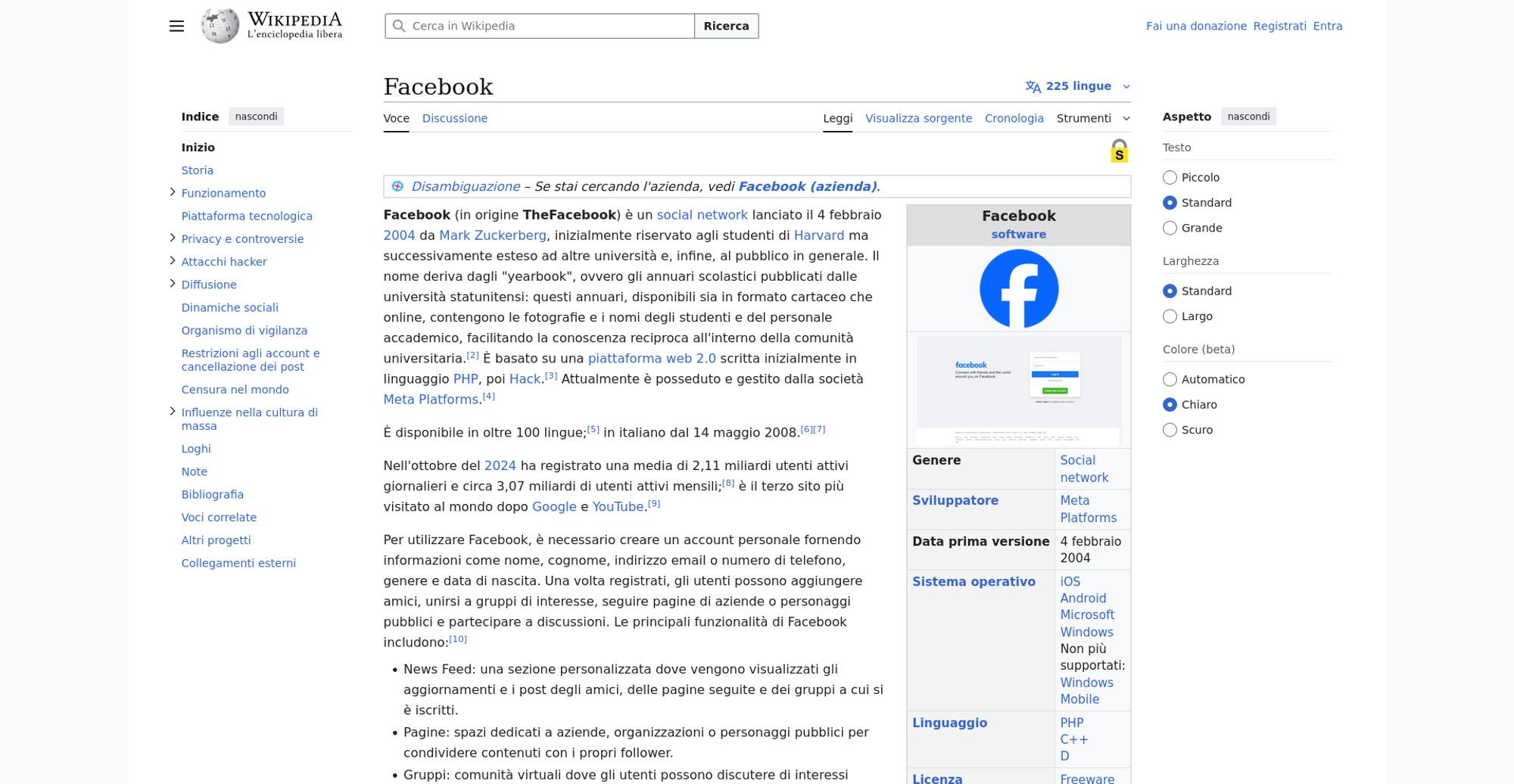 | Offenders: https://upload.wikimedia.org/wikipedia/commons/thumb/a/a5/Semi-protection-shackl...le-itwiki.svg.png https://upload.wikimedia.org/wikipedia/commons/thumb/b/bc/Nota_disambigua.svg/20...isambigua.svg.png https://upload.wikimedia.org/wikipedia/commons/thumb/b/b9/2023_Facebook_icon.svg...book_icon.svg.png https://upload.wikimedia.org/wikipedia/commons/thumb/6/69/Screen_of_Facebook_%28...ebook_%282%29.PNG https://upload.wikimedia.org/wikipedia/commons/thumb/8/87/Magnifying_glass_icon_...icon_mgx2.svg.png https://upload.wikimedia.org/wikipedia/commons/thumb/e/ef/MarkZuckerberg.jpg/250...arkZuckerberg.jpg https://upload.wikimedia.org/wikipedia/commons/thumb/4/49/Sean_Parker.jpg/250px-Sean_Parker.jpg https://upload.wikimedia.org/wikipedia/commons/thumb/f/f7/Social_networks.jpg/50...cial_networks.jpg https://upload.wikimedia.org/wikipedia/commons/thumb/c/c5/Local-important.svg/40...important.svg.png https://upload.wikimedia.org/wikipedia/commons/thumb/c/ce/Old-Facebook-Logo.jpg/...Facebook-Logo.jpg https://upload.wikimedia.org/wikipedia/commons/thumb/f/fd/Facebook-reversed.svg/...-reversed.svg.png https://upload.wikimedia.org/wikipedia/commons/thumb/8/87/Facebook_Logo_%282015%...%29_light.svg.png https://upload.wikimedia.org/wikipedia/commons/thumb/8/89/Facebook_Logo_%282019%...282019%29.svg.png https://upload.wikimedia.org/wikipedia/commons/thumb/9/93/Facebook_logo_%282023%...282023%29.svg.png https://upload.wikimedia.org/wikipedia/commons/thumb/f/fa/Wikiquote-logo.svg/20p...uote-logo.svg.png https://upload.wikimedia.org/wikipedia/commons/thumb/4/4a/Commons-logo.svg/20px-Commons-logo.svg.png https://upload.wikimedia.org/wikipedia/commons/thumb/2/24/Wikinews-logo.svg/20px...news-logo.svg.png https://upload.wikimedia.org/wikipedia/commons/thumb/7/73/Blue_pencil.svg/20px-Blue_pencil.svg.png https://upload.wikimedia.org/wikipedia/commons/thumb/7/7b/Meta_Platforms_Inc._lo...Inc._logo.svg.png https://upload.wikimedia.org/wikipedia/commons/thumb/7/70/Applications-internet....-internet.svg.png https://upload.wikimedia.org/wikipedia/commons/thumb/0/0f/People.svg/40px-People.svg.png https://en.wikipedia.org/w/index.php...a.org/w/index.php https://en.wikipedia.org/w/index.php...a.org/w/index.php https://it.wikipedia.org/wiki/Special:CentralAutoLogin/start?useformat=desktop&type=script&usesul3=1 https://auth.wikimedia.org/metawiki/wiki/Special:CentralAutoLogin/checkLoggedIn...gin/checkLoggedIn |