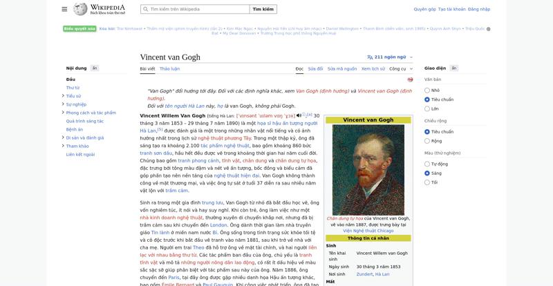 | Offenders: https://vi.wikipedia.org/wiki/Vincent_van_Gogh https://meta.wikimedia.org/w/index.php...a.org/w/index.php |