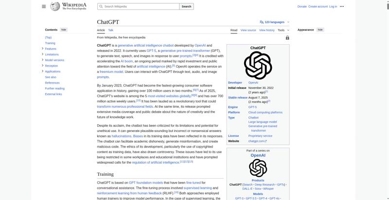 | Offenders: https://upload.wikimedia.org/wikipedia/en/thumb/1/1b/Semi-protection-shackle.svg...n-shackle.svg.png https://upload.wikimedia.org/wikipedia/commons/thumb/e/ef/ChatGPT-Logo.svg/250px...tGPT-Logo.svg.png https://upload.wikimedia.org/wikipedia/commons/thumb/e/ef/ChatGPT-Logo.svg/120px...tGPT-Logo.svg.png https://upload.wikimedia.org/wikipedia/commons/thumb/b/b5/Three-stage_large_lang..._workflow.svg.png https://upload.wikimedia.org/wikipedia/commons/thumb/a/a9/ChatGPT_screenshot_-_A...ug_25%2C_2025.png https://upload.wikimedia.org/wikipedia/commons/thumb/4/47/A_pictorial_interpreta...ed_by_ChatGPT.jpg https://upload.wikimedia.org/wikipedia/commons/thumb/3/3a/ChatGPT_hallucination....hallucination.png https://upload.wikimedia.org/wikipedia/commons/thumb/8/8d/Sam_Altman_CropEdit_Ja...t_James_Tamim.jpg https://upload.wikimedia.org/wikipedia/commons/thumb/b/b6/The_AI_Arms_Race_Is_Ch...erything.webp.png https://upload.wikimedia.org/wikipedia/commons/thumb/9/97/Chatgpt_usage.svg/250p...gpt_usage.svg.png https://upload.wikimedia.org/wikipedia/commons/thumb/e/eb/Countries_where_ChatGP...available.svg.png https://upload.wikimedia.org/wikipedia/commons/thumb/8/84/ChatGPT_essay_draft.pn...T_essay_draft.png https://upload.wikimedia.org/wikipedia/commons/thumb/2/2e/Books_about_ChatGPT_in...aka_bookstore.jpg https://upload.wikimedia.org/wikipedia/commons/thumb/d/de/Globe_of_letters.svg/2...f_letters.svg.png https://upload.wikimedia.org/wikipedia/commons/thumb/a/a9/Noun-technology.svg/20...echnology.svg.png https://upload.wikimedia.org/wikipedia/en/thumb/4/4a/Commons-logo.svg/40px-Commons-logo.svg.png https://upload.wikimedia.org/wikipedia/en/thumb/8/8a/OOjs_UI_icon_edit-ltr-progr...ogressive.svg.png https://upload.wikimedia.org/wikipedia/commons/thumb/a/af/OpenAI_logo_2025_%28wo...rdmark%29.svg.png https://upload.wikimedia.org/wikipedia/en/thumb/9/96/Symbol_category_class.svg/2...ory_class.svg.png https://upload.wikimedia.org/wikipedia/commons/6/65/Lock-green.svg https://upload.wikimedia.org/wikipedia/commons/4/4d/Icon_pdf_file.png https://upload.wikimedia.org/wikipedia/commons/a/aa/Lock-red-alt-2.svg https://upload.wikimedia.org/wikipedia/commons/d/d6/Lock-gray-alt-2.svg https://en.wikipedia.org/wiki/Special:CentralAutoLogin/start?useformat=desktop&type=script&usesul3=1 https://auth.wikimedia.org/metawiki/wiki/Special:CentralAutoLogin/checkLoggedIn...gin/checkLoggedIn https://measure-magru.wikimedia.org/measure...media.org/measure https://measure-ulsfo.wikimedia.org/measure...media.org/measure https://measure-eqiad.wikimedia.org/measure...media.org/measure https://measure-eqsin.wikimedia.org/measure...media.org/measure https://measure-esams.wikimedia.org/measure...media.org/measure https://measure-drmrs.wikimedia.org/measure...media.org/measure https://measure-codfw.wikimedia.org/measure...media.org/measure https://measure-drmrs.wikimedia.org/measure...media.org/measure https://measure-eqsin.wikimedia.org/measure...media.org/measure https://measure-esams.wikimedia.org/measure...media.org/measure https://measure-codfw.wikimedia.org/measure...media.org/measure https://measure-magru.wikimedia.org/measure...media.org/measure https://measure-eqiad.wikimedia.org/measure...media.org/measure https://measure-ulsfo.wikimedia.org/measure...media.org/measure https://measure-ulsfo.wikimedia.org/measure...media.org/measure https://measure-drmrs.wikimedia.org/measure...media.org/measure https://measure-codfw.wikimedia.org/measure...media.org/measure https://measure-magru.wikimedia.org/measure...media.org/measure https://measure-esams.wikimedia.org/measure...media.org/measure https://measure-eqsin.wikimedia.org/measure...media.org/measure https://measure-eqiad.wikimedia.org/measure...media.org/measure |