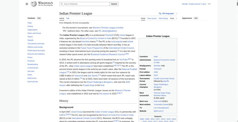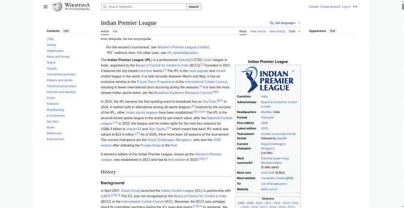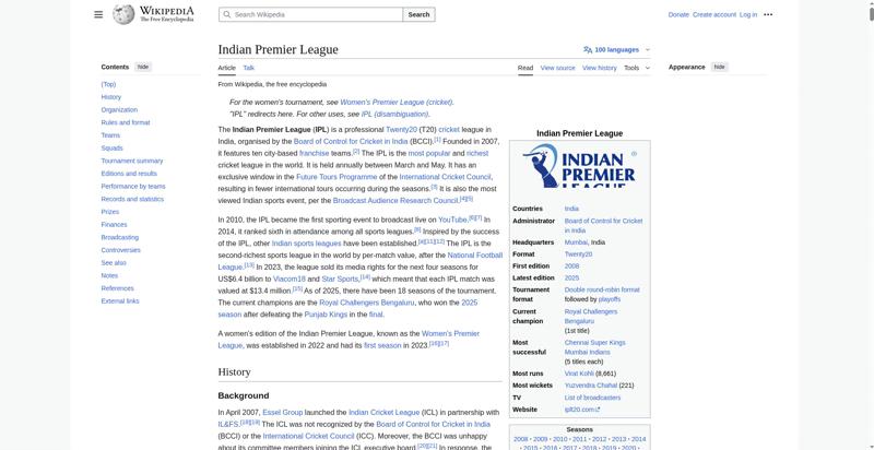 | Title | Indian Premier League - Wikipedia |