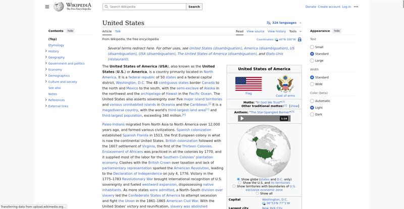 | Offenders: https://en.wikipedia.org/static/images/mobile/copyright/wikipedia-wordmark-en.svg https://en.wikipedia.org/static/images/mobile/copyright/wikipedia-tagline-en.svg https://upload.wikimedia.org/wikipedia/commons/thumb/9/96/Flag_of_the_United_Sta...ations%29.svg.png https://upload.wikimedia.org/wikipedia/commons/thumb/7/77/K%C3%B6ppen_Climate_Ty...e_Types_US_50.png https://upload.wikimedia.org/wikipedia/commons/thumb/f/f3/January_2025_Official_...t_of_JD_Vance.jpg https://upload.wikimedia.org/wikipedia/commons/thumb/a/a4/Map_of_USA_with_state_...itory_names_2.png |