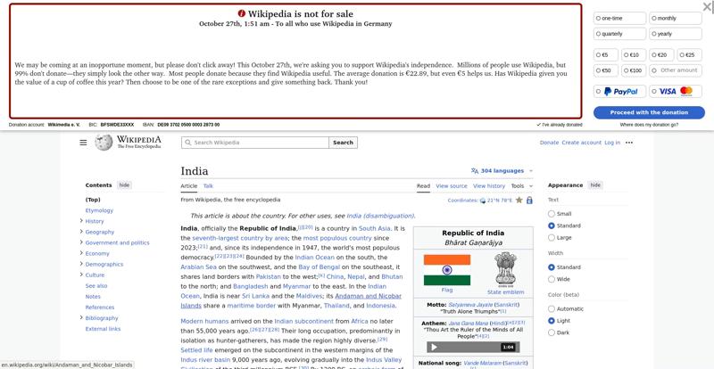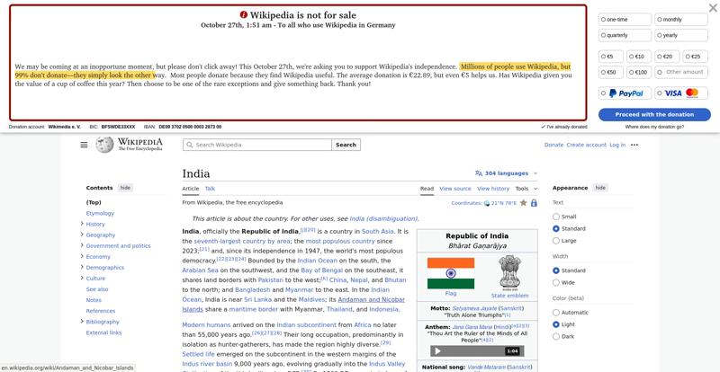 | Offenders: https://en.wikipedia.org/wiki/India https://meta.wikimedia.org/w/index.php...a.org/w/index.php |