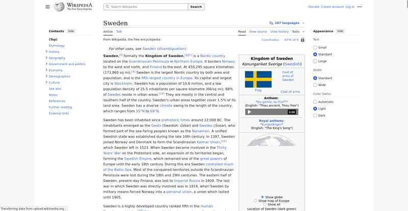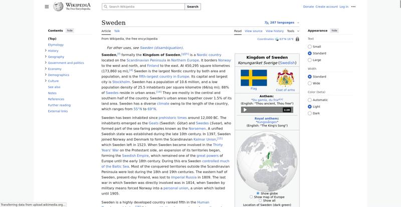 | Offenders: https://en.wikipedia.org/static/images/mobile/copyright/wikipedia-wordmark-en.svg https://en.wikipedia.org/static/images/mobile/copyright/wikipedia-tagline-en.svg https://upload.wikimedia.org/wikipedia/en/thumb/4/4c/Flag_of_Sweden.svg/250px-Flag_of_Sweden.svg.png https://upload.wikimedia.org/wikipedia/commons/thumb/e/e3/Sweden_Vegetation_Zone...etation_Zones.jpg |