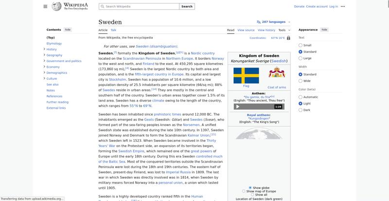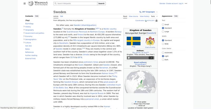 | Offenders: https://en.wikipedia.org/static/images/mobile/copyright/wikipedia-wordmark-en.svg https://en.wikipedia.org/static/images/mobile/copyright/wikipedia-tagline-en.svg https://upload.wikimedia.org/wikipedia/en/thumb/4/4c/Flag_of_Sweden.svg/250px-Flag_of_Sweden.svg.png https://upload.wikimedia.org/wikipedia/commons/thumb/e/e3/Sweden_Vegetation_Zone...etation_Zones.jpg |