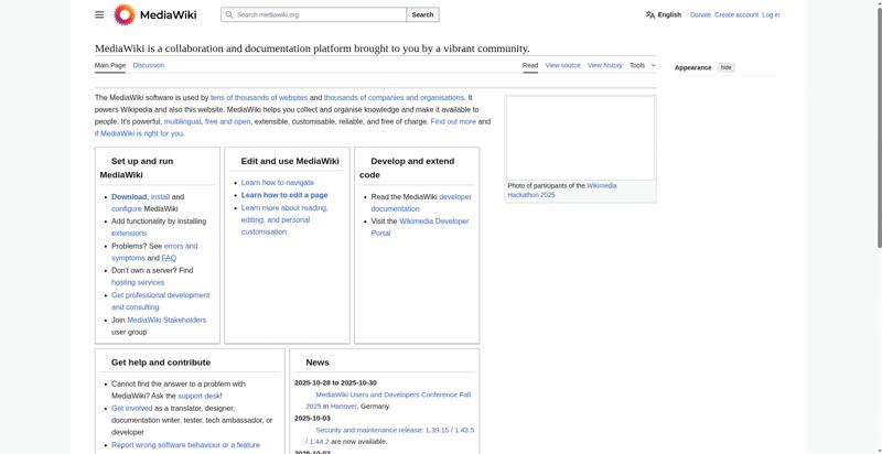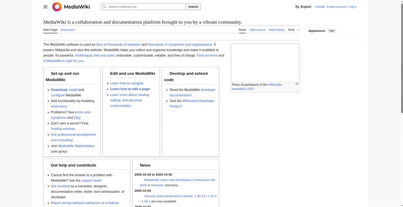 | <img src="//upload.wikimedia.org/wikipedia/commons/thumb/e/e4/Wikimedia_Hackathon_2025_Group_photo_from_drone.jpg/330px-Wikimedia_Hackathon_2025_Group_photo_from_drone.jpg" decoding="async" width="320" height="180" class="mw-file-element" srcset="//upload.wikimedia.org/wikipedia/commons/thumb/e/e4/Wikimedia_Hackathon_2025_Group_photo_from_drone.jpg/500px-Wikimedia_Hackathon_2025_Group_photo_from_drone.jpg 1.5x, //upload.wikimedia.org/wikipedia/commons/thumb/e/e4/Wikimedia_Hackathon_2025_Group_photo_from_drone.jpg/960px-Wikimedia_Hackathon_2025_Group_photo_from_drone.jpg 2x" data-file-width="3775" data-file-height="2119"> | |||||