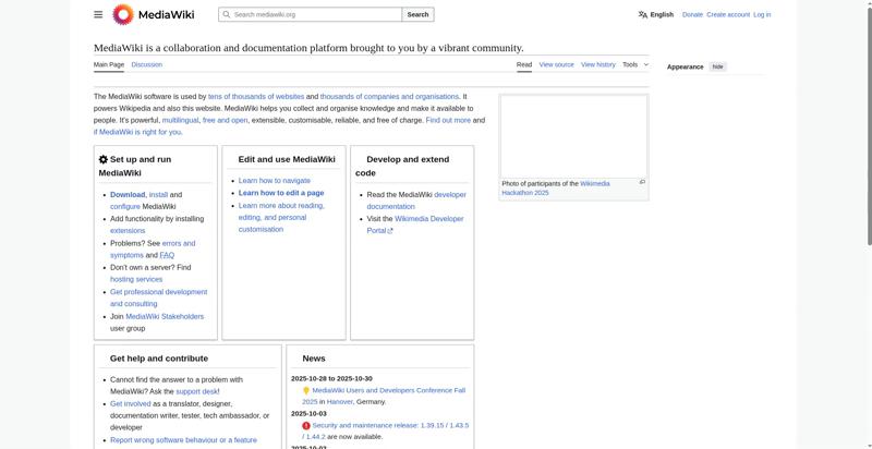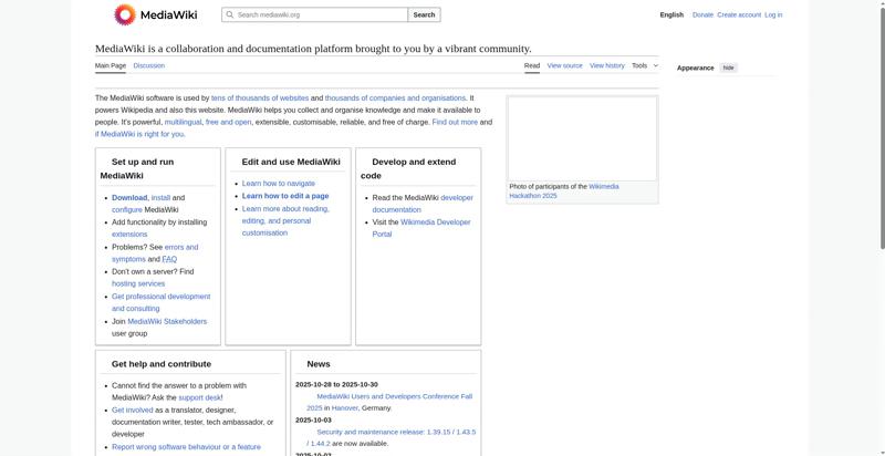 | <img src="//upload.wikimedia.org/wikipedia/commons/thumb/e/e4/Wikimedia_Hackathon_2025_Group_photo_from_drone.jpg/330px-Wikimedia_Hackathon_2025_Group_photo_from_drone.jpg" decoding="async" width="320" height="180" class="mw-file-element" srcset="//upload.wikimedia.org/wikipedia/commons/thumb/e/e4/Wikimedia_Hackathon_2025_Group_photo_from_drone.jpg/500px-Wikimedia_Hackathon_2025_Group_photo_from_drone.jpg 1.5x, //upload.wikimedia.org/wikipedia/commons/thumb/e/e4/Wikimedia_Hackathon_2025_Group_photo_from_drone.jpg/960px-Wikimedia_Hackathon_2025_Group_photo_from_drone.jpg 2x" data-file-width="3775" data-file-height="2119"> | |||||