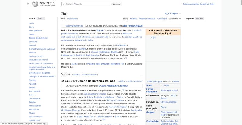 | Offenders: https://it.wikipedia.org/static/images/mobile/copyright/wikipedia-wordmark-en.svg https://upload.wikimedia.org/wikipedia/it/thumb/8/8f/Monoscopio_rca.jpg/250px-Monoscopio_rca.jpg https://upload.wikimedia.org/wikipedia/commons/thumb/d/dd/Rai_1949.svg/250px-Rai_1949.svg.png https://upload.wikimedia.org/wikipedia/commons/thumb/e/e5/Logo_of_RAI_%281954-19...4-1983%29.svg.png https://upload.wikimedia.org/wikipedia/commons/thumb/8/82/Logo_of_RAI_%281983-19...81983-1988%29.png https://upload.wikimedia.org/wikipedia/commons/thumb/3/37/Logo_of_RAI_%281988-20...8-2000%29.svg.png https://upload.wikimedia.org/wikipedia/commons/thumb/2/28/Logo_of_RAI_%282000-20...0-2010%29.svg.png https://upload.wikimedia.org/wikipedia/commons/thumb/d/da/Rai_-_logo_%28Italy%2C...0-2016%29.svg.png https://upload.wikimedia.org/wikipedia/commons/thumb/8/88/Logo_of_RAI_%282016%29...282016%29.svg.png |