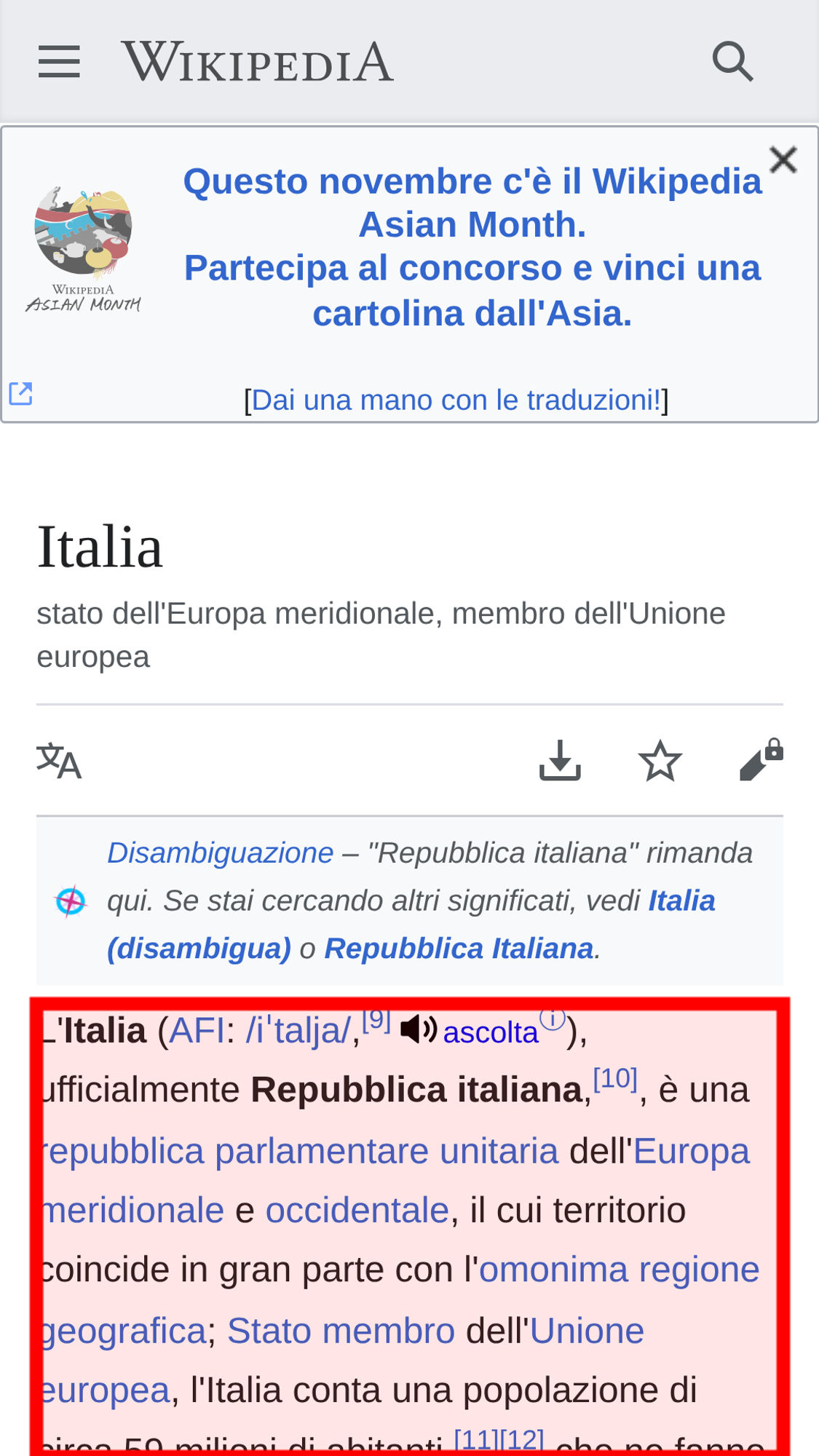 | Avoid slowing down the critical rendering path (avoidRenderBlocking) | The page has 1 blocking requests and 0 in body parser blocking (0 JavaScript and 1 CSS). There are 1 potentially render blocking requests. You need to verify if it is render blocking: https://it.wikipedia.org/w/load.php?lang=it&modules=startup&only=scripts&raw=1&skin=minerva | 99 | |||||||||||||||||||||