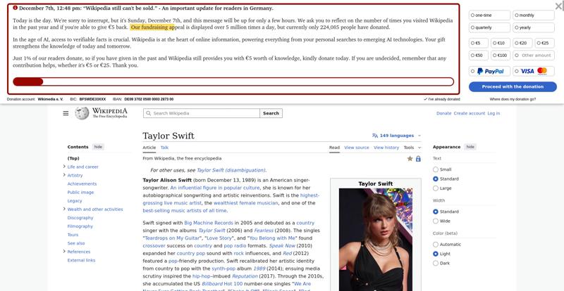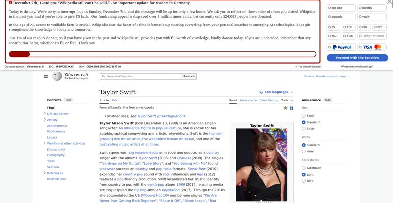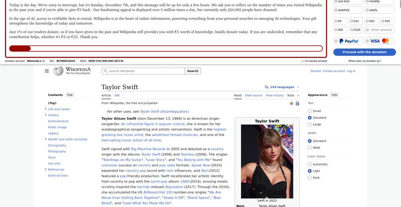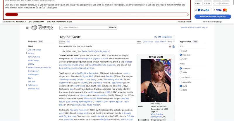 | Offenders: https://en.wikipedia.org/wiki/Taylor_Swift https://meta.wikimedia.org/w/index.php...a.org/w/index.php |