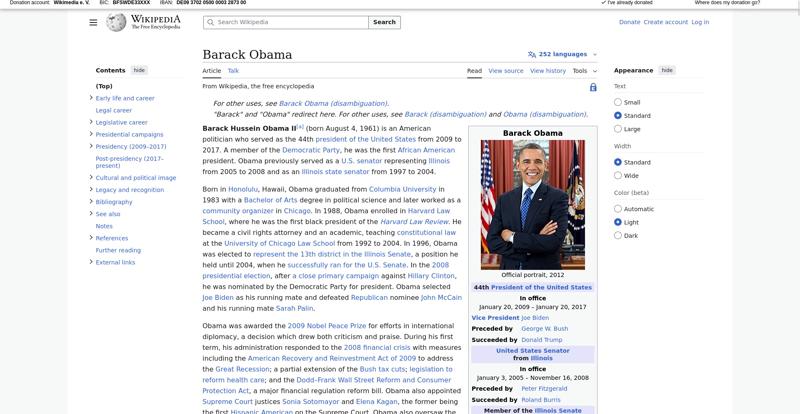 | Offenders: https://upload.wikimedia.org/wikipedia/en/thumb/8/8c/Extended-protection-shackle...n-shackle.svg.png https://upload.wikimedia.org/wikipedia/commons/thumb/8/8d/President_Barack_Obama..._Barack_Obama.jpg https://upload.wikimedia.org/wikipedia/commons/thumb/1/11/Barack_Obama_signature...signature.svg.png https://upload.wikimedia.org/wikipedia/commons/thumb/e/e7/Obama_2008_portrait_cr...se_cropped%29.jpg https://upload.wikimedia.org/wikipedia/commons/thumb/3/36/Seal_of_the_President_...ed_States.svg.png https://upload.wikimedia.org/wikipedia/en/thumb/3/33/Ann_Dunham_with_father_and_..._and_children.jpg https://upload.wikimedia.org/wikipedia/commons/thumb/9/99/Barry_Soetoro_school_r...school_record.jpg https://upload.wikimedia.org/wikipedia/commons/thumb/1/1b/Nuvola_apps_kaboodle.s..._kaboodle.svg.png https://upload.wikimedia.org/wikipedia/commons/thumb/2/26/Obama_family_portrait_...he_Green_Room.jpg https://upload.wikimedia.org/wikipedia/commons/thumb/3/3d/Obamas_at_church_on_In...tion_Day_2013.jpg https://upload.wikimedia.org/wikipedia/commons/thumb/b/b6/Obamamiltondavis1.jpg/...amiltondavis1.jpg https://upload.wikimedia.org/wikipedia/commons/thumb/a/a4/Chicago%2C_November_2%...5471954323%29.jpg https://upload.wikimedia.org/wikipedia/commons/thumb/f/f1/BarackObamaportrait.jp...Obamaportrait.jpg https://upload.wikimedia.org/wikipedia/commons/thumb/2/24/ElectoralCollege2008.s...llege2008.svg.png https://upload.wikimedia.org/wikipedia/commons/thumb/3/33/Barack_obama_by_bill_c...y_bill_cramer.jpg https://upload.wikimedia.org/wikipedia/commons/thumb/4/44/ElectoralCollege2012.s...llege2012.svg.png https://upload.wikimedia.org/wikipedia/commons/thumb/5/5b/Greater_coat_of_arms_o...ed_States.svg.png https://upload.wikimedia.org/wikipedia/commons/thumb/1/1b/Yellow_flag_waving.svg...ag_waving.svg.png https://upload.wikimedia.org/wikipedia/en/thumb/a/a4/Flag_of_the_United_States.s...ed_States.svg.png https://upload.wikimedia.org/wikipedia/commons/thumb/d/d7/US_President_Barack_Ob...e_-_2009Jan20.jpg https://upload.wikimedia.org/wikipedia/commons/thumb/e/e9/Official_portrait_of_B..._Barack_Obama.jpg https://upload.wikimedia.org/wikipedia/commons/thumb/3/32/Barack_Obama_addresses...ss_2009-02-24.jpg https://upload.wikimedia.org/wikipedia/commons/thumb/4/4b/Barack_Obama_visiting_...rora_shooting.jpg https://upload.wikimedia.org/wikipedia/commons/thumb/f/fc/U.S._Total_Deficits_vs...ses_2001-2010.png https://upload.wikimedia.org/wikipedia/commons/thumb/2/25/US_Employment_Statisti...tatistics.svg.png https://upload.wikimedia.org/wikipedia/commons/thumb/9/9f/Job_Growth_by_U.S._Pre...resident_-_v1.png https://upload.wikimedia.org/wikipedia/commons/thumb/6/63/Obama-venice-la.jpg/25...ama-venice-la.jpg https://upload.wikimedia.org/wikipedia/commons/thumb/7/79/PPACA_Premium_Chart.jp...Premium_Chart.jpg https://upload.wikimedia.org/wikipedia/commons/thumb/8/84/Percentage_of_Individu...%2C_1963-2015.png https://upload.wikimedia.org/wikipedia/commons/thumb/9/99/P06409PS-0571_%2835946...3594694537%29.jpg https://upload.wikimedia.org/wikipedia/commons/thumb/6/6f/Barack_Obama%27s_trip_..._2016_%289%29.jpg https://upload.wikimedia.org/wikipedia/commons/thumb/7/70/Barack_Obama_with_Afgh...and_Joe_Biden.jpg https://upload.wikimedia.org/wikipedia/commons/thumb/a/ac/Obama_and_Biden_await_..._on_bin_Laden.jpg https://upload.wikimedia.org/wikipedia/commons/thumb/f/f6/Handshake_between_the_...C3%BAl_Castro.jpg https://upload.wikimedia.org/wikipedia/commons/thumb/1/1b/Barack_Obama_welcomes_...e_Oval_Office.jpg https://upload.wikimedia.org/wikipedia/commons/thumb/1/17/Barack_Obama_talks_wit...8637772147%29.jpg https://upload.wikimedia.org/wikipedia/commons/thumb/e/eb/Vladimir_Putin_and_Bar...5-09-29%29_01.jpg https://upload.wikimedia.org/wikipedia/commons/thumb/9/96/Obama_Macri_October_20..._October_2017.jpg https://upload.wikimedia.org/wikipedia/commons/thumb/1/15/P20220405AS-1082_%2852...2067439422%29.jpg https://upload.wikimedia.org/wikipedia/commons/thumb/2/28/Former_President_Barac...%28cropped%29.jpg https://upload.wikimedia.org/wikipedia/commons/thumb/c/c0/Gallup_Poll-Approval_R...ack_Obama.svg.png https://upload.wikimedia.org/wikipedia/en/thumb/6/69/P_vip.svg/40px-P_vip.svg.png https://upload.wikimedia.org/wikipedia/en/thumb/a/a4/Flag_of_the_United_States.s...ed_States.svg.png https://upload.wikimedia.org/wikipedia/commons/thumb/e/ef/Flag_of_Hawaii.svg/40p...of_Hawaii.svg.png https://upload.wikimedia.org/wikipedia/commons/thumb/9/9b/Flag_of_Chicago%2C_Ill..._Illinois.svg.png https://upload.wikimedia.org/wikipedia/commons/thumb/0/01/Flag_of_Illinois.svg/4..._Illinois.svg.png https://upload.wikimedia.org/wikipedia/commons/thumb/1/17/Balance%2C_by_David.sv..._by_David.svg.png https://upload.wikimedia.org/wikipedia/en/thumb/0/01/A_coloured_voting_box.svg/4...oting_box.svg.png https://upload.wikimedia.org/wikipedia/commons/thumb/c/c1/Blue_iPod_Nano.jpg/20px-Blue_iPod_Nano.jpg https://upload.wikimedia.org/wikipedia/commons/thumb/9/9d/IPhone5white.png/20px-IPhone5white.png https://upload.wikimedia.org/wikipedia/en/thumb/4/4a/Commons-logo.svg/20px-Commons-logo.svg.png https://upload.wikimedia.org/wikipedia/commons/thumb/2/24/Wikinews-logo.svg/40px...news-logo.svg.png https://upload.wikimedia.org/wikipedia/commons/thumb/f/fa/Wikiquote-logo.svg/40p...uote-logo.svg.png https://upload.wikimedia.org/wikipedia/commons/thumb/4/4c/Wikisource-logo.svg/40...urce-logo.svg.png https://upload.wikimedia.org/wikipedia/commons/thumb/f/ff/Wikidata-logo.svg/40px...data-logo.svg.png https://upload.wikimedia.org/wikipedia/en/thumb/8/8a/OOjs_UI_icon_edit-ltr-progr...ogressive.svg.png https://upload.wikimedia.org/wikipedia/commons/thumb/2/21/Speaker_Icon.svg/20px-Speaker_Icon.svg.png https://upload.wikimedia.org/wikipedia/en/thumb/9/96/Symbol_category_class.svg/2...ory_class.svg.png https://upload.wikimedia.org/wikipedia/en/thumb/d/db/Symbol_list_class.svg/20px-...ist_class.svg.png https://upload.wikimedia.org/wikipedia/commons/thumb/f/f