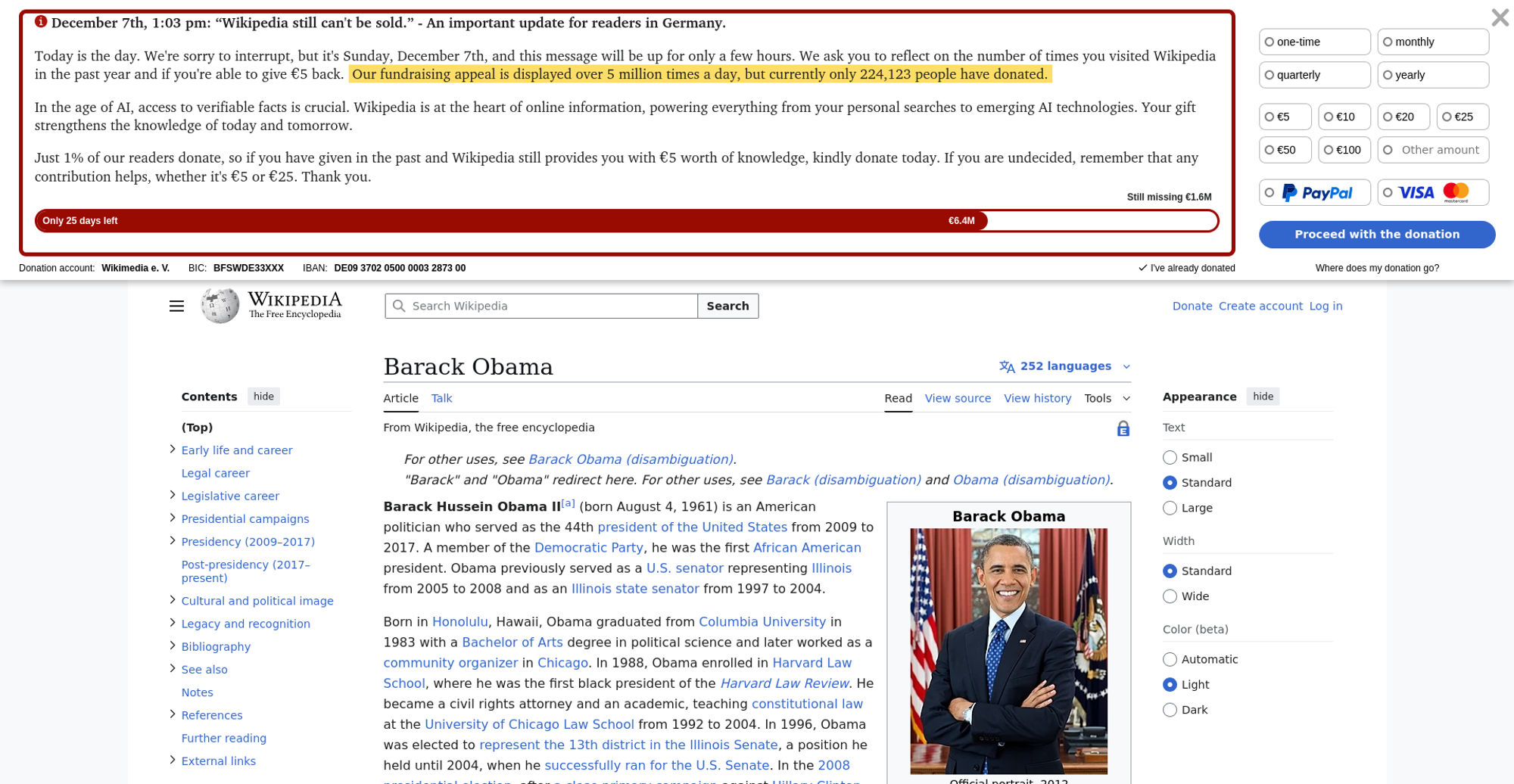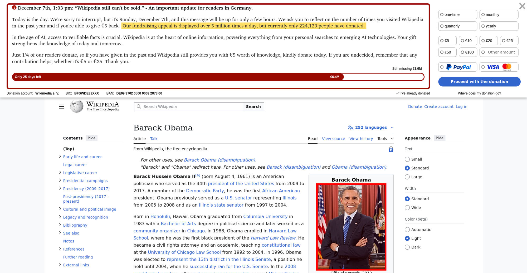 | Offenders: https://en.wikipedia.org/wiki/Barack_Obama https://meta.wikimedia.org/w/index.php...a.org/w/index.php |
