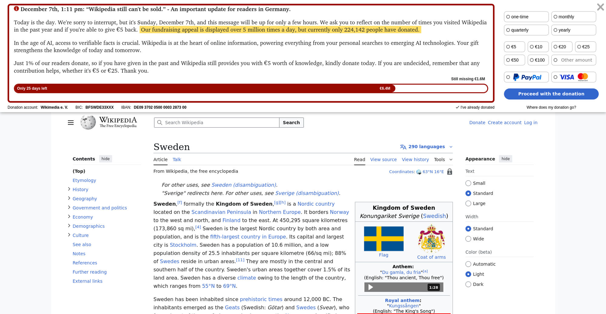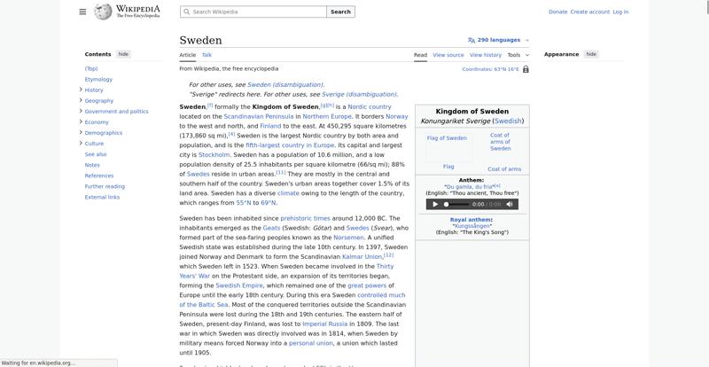 | Offenders: https://upload.wikimedia.org/wikipedia/en/thumb/1/1b/Semi-protection-shackle.svg...n-shackle.svg.png https://upload.wikimedia.org/wikipedia/en/thumb/4/4c/Flag_of_Sweden.svg/250px-Flag_of_Sweden.svg.png https://upload.wikimedia.org/wikipedia/commons/thumb/e/e5/Great_coat_of_arms_of_...of_Sweden.svg.png https://upload.wikimedia.org/wikipedia/commons/thumb/b/b0/Increase2.svg/20px-Increase2.svg.png https://upload.wikimedia.org/wikipedia/commons/thumb/c/c2/EU-Sweden_%28orthograp...ection%29.svg.png https://upload.wikimedia.org/wikipedia/commons/thumb/0/06/EU-Sweden.svg/330px-EU-Sweden.svg.png https://upload.wikimedia.org/wikipedia/commons/thumb/7/74/Increase_Neutral.svg/2...e_Neutral.svg.png https://upload.wikimedia.org/wikipedia/commons/thumb/5/59/Increase_Negative.svg/..._Negative.svg.png https://upload.wikimedia.org/wikipedia/commons/thumb/a/ac/Vendel_I_helmet_456057...helmet_456057.jpg https://upload.wikimedia.org/wikipedia/commons/thumb/a/a7/Vikings-Voyages.png/33...kings-Voyages.png https://upload.wikimedia.org/wikipedia/commons/thumb/b/bd/Bildsten_med_skepp_800...de%2C_Gotland.jpg https://upload.wikimedia.org/wikipedia/commons/thumb/4/48/Map_of_Sweden_ca_1280....weden_ca_1280.png https://upload.wikimedia.org/wikipedia/commons/thumb/5/58/Gustav_Vasa.jpg/250px-Gustav_Vasa.jpg https://upload.wikimedia.org/wikipedia/commons/thumb/c/c6/Gustave_Adolphe_at_Bre...lter-f3706497.jpg https://upload.wikimedia.org/wikipedia/commons/thumb/9/90/Swedish_Empire.svg/250...sh_Empire.svg.png https://upload.wikimedia.org/wikipedia/commons/thumb/e/e9/Marten%27s_Poltava.jpg...n%27s_Poltava.jpg https://upload.wikimedia.org/wikipedia/commons/thumb/c/c6/Starvation_image_from_...eslandet_1867.jpg https://upload.wikimedia.org/wikipedia/commons/thumb/4/4d/Farewell_to_home%2C_G%...%28cropped%29.jpg https://upload.wikimedia.org/wikipedia/commons/thumb/e/e2/Olivecrona_erlander_38..._erlander_380.jpg https://upload.wikimedia.org/wikipedia/commons/thumb/7/7c/Tratado_de_Lisboa_13_1...007_%28081%29.jpg https://upload.wikimedia.org/wikipedia/commons/thumb/7/72/Vy_mot_Stora_Sj%C3%B6f...n_Saltoluokta.jpg https://upload.wikimedia.org/wikipedia/commons/thumb/b/b1/Sand%C3%B6n_-_KMB_-_16...6001000454384.jpg https://upload.wikimedia.org/wikipedia/commons/thumb/2/2f/Koppen-Geiger_Map_v2_S...80%932020.svg.png https://upload.wikimedia.org/wikipedia/commons/thumb/e/e3/Sweden_Vegetation_Zone...etation_Zones.jpg https://upload.wikimedia.org/wikipedia/commons/thumb/6/67/King_Carl_XVI_Gustaf_a..._2009_Cropped.png https://upload.wikimedia.org/wikipedia/commons/thumb/c/ca/Ulf_Kristersson_on_29_..._29_June_2023.jpg https://upload.wikimedia.org/wikipedia/commons/thumb/3/38/Rosenbad_2006.jpg/330px-Rosenbad_2006.jpg https://upload.wikimedia.org/wikipedia/commons/thumb/0/00/Riksdag.ipred_b9dn510_..._b9dn510_4451.jpg https://upload.wikimedia.org/wikipedia/commons/thumb/d/da/SWE-Map_Kommuner2007.s...muner2007.svg.png https://upload.wikimedia.org/wikipedia/commons/thumb/0/07/Hogsta_domstolen_Stock...len_Stockholm.jpg https://upload.wikimedia.org/wikipedia/commons/thumb/3/39/P20230705AS-0417_%2853...3233830047%29.jpg https://upload.wikimedia.org/wikipedia/commons/thumb/e/e3/Saab_JAS_39_Gripen_at_...tered%29_copy.jpg https://upload.wikimedia.org/wikipedia/commons/thumb/3/30/Stridsfordon_90_Reving...evinge_2012-2.jpg https://upload.wikimedia.org/wikipedia/commons/thumb/3/3c/Volvo_EX90_Auto_Zueric...2024_DSC_6147.jpg https://upload.wikimedia.org/wikipedia/commons/thumb/d/d1/IKEA_%288020223012%29....8020223012%29.jpg https://upload.wikimedia.org/wikipedia/commons/thumb/6/64/H%26M_Canal_City_Hakat...y_Hakata_shop.JPG https://upload.wikimedia.org/wikipedia/commons/thumb/2/20/Spotify_App_%282374588...3745887894%29.jpg https://upload.wikimedia.org/wikipedia/commons/thumb/1/1d/Ringhals.JPG/250px-Ringhals.JPG https://upload.wikimedia.org/wikipedia/commons/thumb/0/01/%C3%98resund_Bridge_fr...eptember_2015.jpg https://upload.wikimedia.org/wikipedia/commons/thumb/e/ed/E6-E20_Olskroksmotet_i...in_Gothenburg.png https://upload.wikimedia.org/wikipedia/commons/thumb/d/d0/Hall%2C_Stockholm_Cent...ntral_Station.jpg https://upload.wikimedia.org/wikipedia/commons/thumb/6/6e/AlfredNobel_adjusted.j...obel_adjusted.jpg https://upload.wikimedia.org/wikipedia/commons/thumb/b/b2/Swedishpopdensity.svg/...opdensity.svg.png https://upload.wikimedia.org/wikipedia/commons/thumb/f/f4/Katarina_kyrka_Februar...ruary_2015_02.jpg https://upload.wikimedia.org/wikipedia/commons/thumb/6/64/Uppsala_University_202...iversity_2023.jpg https://upload.wikimedia.org/wikipedia/commons/thumb/c/cb/ABBA_-_TopPop_1974_5.p...TopPop_1974_5.png https://upload.wikimedia.org/wikipedia/commons/thumb/4/41/%C3%96stermalm%2C_Stoc...amio_%2876%29.jpg https://upload.wikimedia.org/wikipedia/commons/thumb/1/1a/00_1110_Kalmar_domkyrk...lmar_domkyrka.jpg https://upload.wikimedia.org/wikipedia/commons/thumb/6/65/Sveriges_Television%2C...levision%2C_2.jpg https://upload.wikimedia.org/wikipedia/commons/thumb/6/6c/Portrait_of_August_Str...rd_Bergh_1905.jpg https://upload.wikimedia.org/wikipedia/commons/thumb/9/92/Pippi_Langkous_in_Nede..._1_%28crop%29.jpg https://upload.wikimedia.org/wikipedia/commons/thumb/f/f4/Valborg_2132_%28713599...7135992133%29.jpg https://upload.wikimedia.org/wikipedia/commons/thumb/8/85/Lucia_2018_NZ7_1187_%2...6327820671%29.jpg https://upload.wikimedia.org/wikipedia/commons/thumb/0/02/Sveriges_Nationaldag_2...ionaldag_2014.jpg https://upload.wikimedia.org/wikipedia/commons/thumb/3/3b/Bj%C3%B6rn_Borg_%28197...79%29_cropped.jpg https://upload.wikimedia.org/wikipedia/en/thumb/4/4c/Flag_of_Sweden.svg/40px-Flag_of_Sweden.svg.png https://upload.wikimedia.org/wikipedia/en/thumb/0/06/Wiktionary-logo-v2.svg/40px...y-logo-v2.svg.png https://upload.wikimedia.org/wikipedia/en/thumb/4/4a/Commons-logo.svg/20px-Commons-logo.svg.png https://upload.wikimedia.org/wikipedia/commons/thumb/2/24/Wikinews-logo.svg/40px...news-logo.svg.png https://upload.wikimedia.org/wikipedia/commons/thumb/f/fa/Wiki