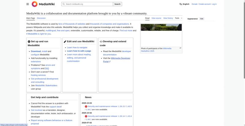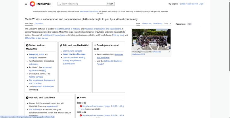 | <img src="//upload.wikimedia.org/wikipedia/commons/thumb/e/e4/Wikimedia_Hackathon_2025_Group_photo_from_drone.jpg/330px-Wikimedia_Hackathon_2025_Group_photo_from_drone.jpg" decoding="async" width="320" height="180" class="mw-file-element" srcset="//upload.wikimedia.org/wikipedia/commons/thumb/e/e4/Wikimedia_Hackathon_2025_Group_photo_from_drone.jpg/500px-Wikimedia_Hackathon_2025_Group_photo_from_drone.jpg 1.5x, //upload.wikimedia.org/wikipedia/commons/thumb/e/e4/Wikimedia_Hackathon_2025_Group_photo_from_drone.jpg/960px-Wikimedia_Hackathon_2025_Group_photo_from_drone.jpg 2x" data-file-width="3775" data-file-height="2119"> | |||||