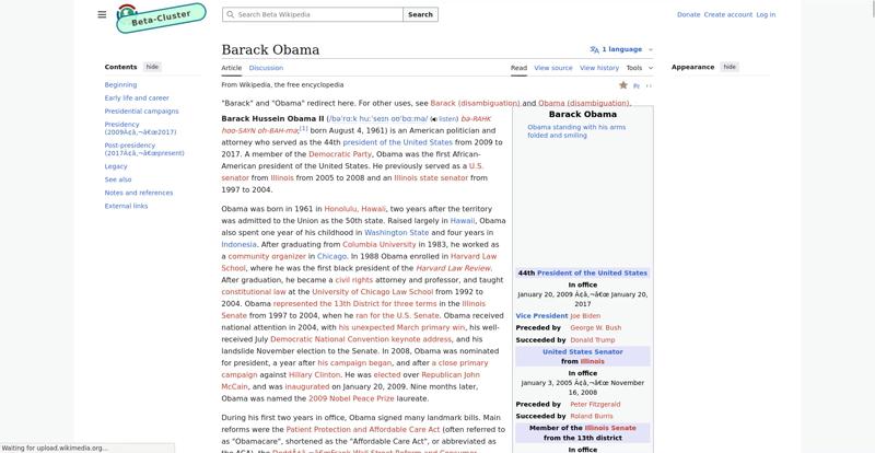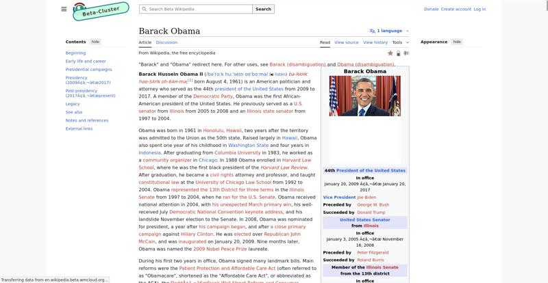 | Offenders: https://en.wikipedia.beta.wmcloud.org/static/images/project-logos/wikimedia-cloud-services.svg https://upload.wikimedia.org/wikipedia/commons/thumb/1/11/Barack_Obama_signature...signature.svg.png https://upload.wikimedia.org/wikipedia/commons/thumb/5/50/2004_Illinois_Senate_r...e_results.svg.png https://upload.wikimedia.org/wikipedia/commons/thumb/2/2b/58th_Presidential_Inau...-D-BP749-1327.jpg https://upload.wikimedia.org/wikipedia/commons/thumb/9/9f/Job_Growth_by_U.S._Pre...resident_-_v1.png |