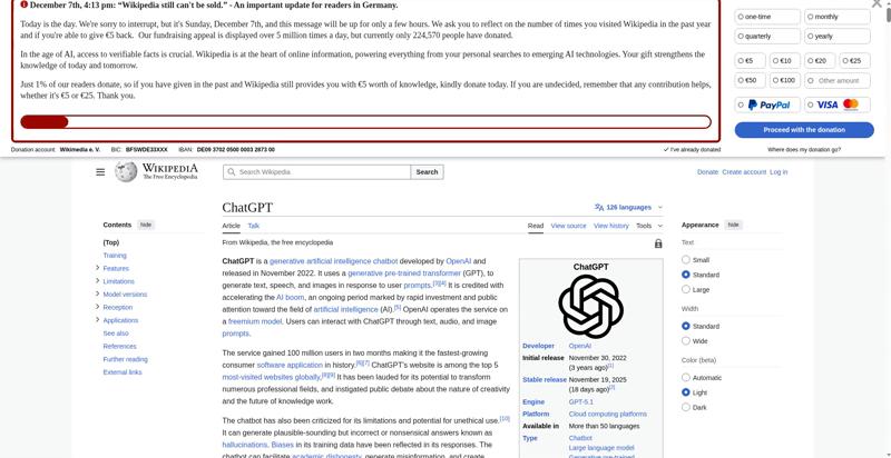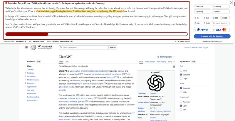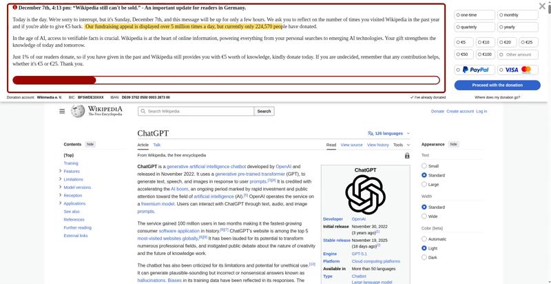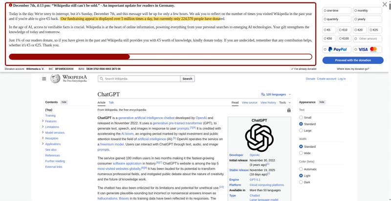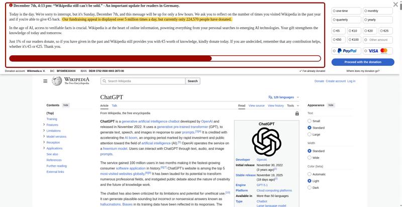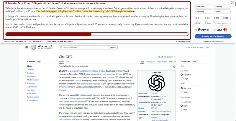 | INFO | https://en.wikipedia.org/w/load.php?lang=en&modules=ext.centralNotice.bannerHistoryLogger%2CchoiceData%2Cdisplay%2CgeoIP%2CimpressionDiet%2CkvStore%2ClargeBannerLimit%2ClegacySupport%2CstartUp%7Cext.centralauth.ForeignApi%2Ccentralautologin%7Cext.checkUser.clientHints%7Cext.cite.ux-enhancements%7Cext.cx.eventlogging.campaigns%7Cext.cx.model%7Cext.cx.uls.quick.actions%7Cext.echo.centralauth%7Cext.eventLogging%2CnavigationTiming%2Cpopups%2CwikimediaEvents%2CxLab%7Cext.eventLogging.metricsPlatform%7Cext.growthExperiments.SuggestedEditSession%7Cext.uls.common%2Cinterface%2Cpreferences%2Cwebfonts%7Cext.urlShortener.toolbar%7Cext.wikimediaEvents.xLab%7Cjquery%2Coojs%2Csite%7Cjquery.client%2CmakeCollapsible%2Ctablesorter%2CtextSelection%7Cjquery.uls.data%7Cmediawiki.ForeignApi%2CString%2CTitle%2Capi%2Cbase%2Ccldr%2Ccookie%2Cexperiments%2CjqueryMsg%2Clanguage%2Crouter%2Cstorage%2Ctoc%2Cuser%2Cutil%2CvisibleTimeout%7Cmediawiki.ForeignApi.core%7Cmediawiki.editfont.styles%7Cmediawiki.language.months%7Cmediawiki.libs.pluralruleparser%7Cmediawiki.page.media%2Cready%7Cmediawiki.page.watch.ajax%7Cmmv.bootstrap%2Ccodex%7Cmw.cx.SiteMapper%7Cskins.vector.clientPreferences%2Cjs%7Cskins.vector.icons.js%7Cwikibase.client.vector-2022%7Cwikibase.databox.fromWikidata&skin=vector-2022&version=1p40y 222:971 "mw.xLab.getExperiment(): The \"xlab-mw-module-loaded-v2\" experiment isn't registered. Is the experiment configured and running?" |