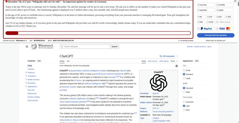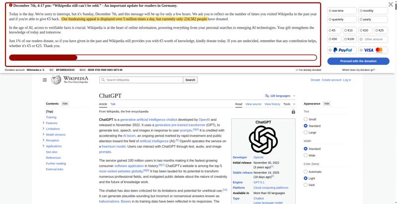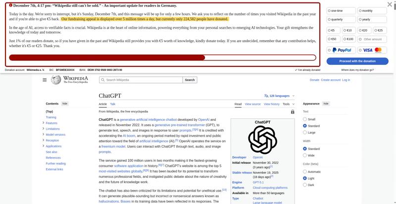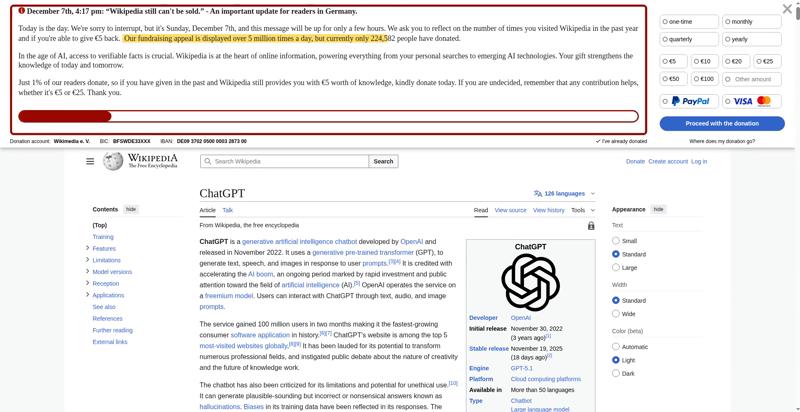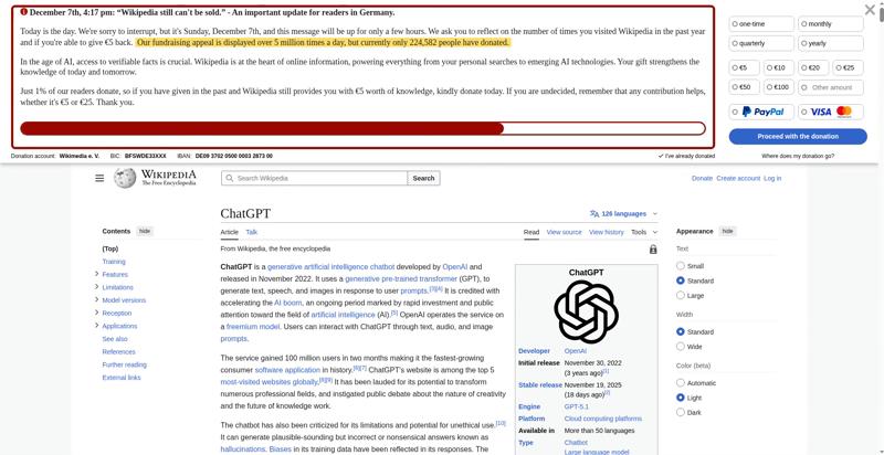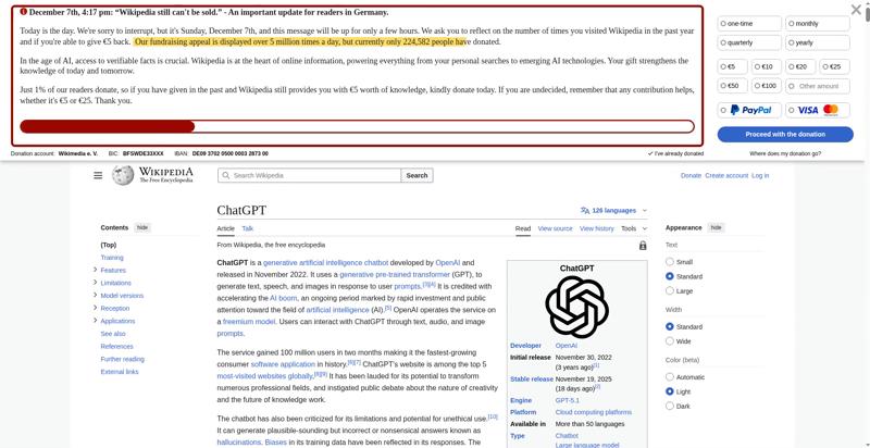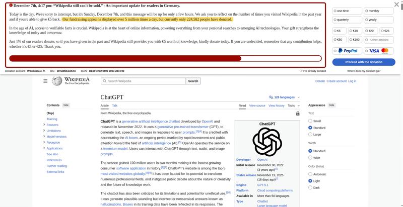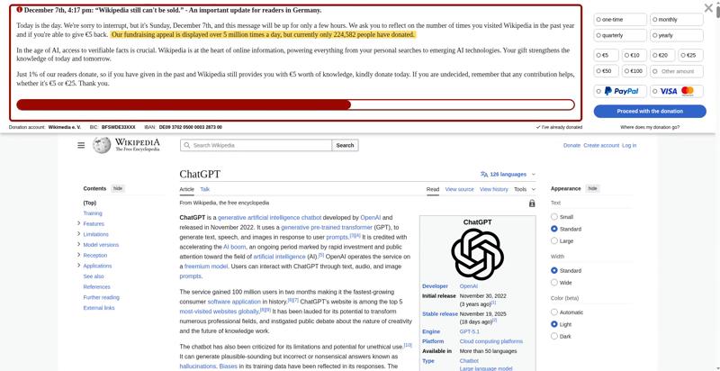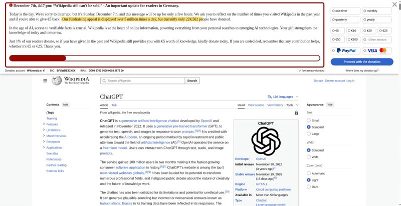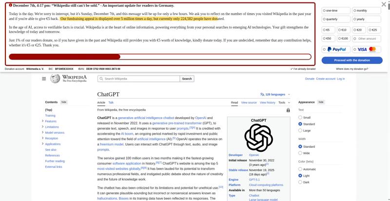 | INFO | https://en.wikipedia.org/w/load.php?lang=en&modules=ext.centralNotice.bannerHistoryLogger%2CchoiceData%2Cdisplay%2CgeoIP%2CimpressionDiet%2CkvStore%2ClargeBannerLimit%2ClegacySupport%2CstartUp%7Cext.centralauth.ForeignApi%2Ccentralautologin%7Cext.checkUser.clientHints%7Cext.cite.ux-enhancements%7Cext.cx.eventlogging.campaigns%7Cext.cx.model%7Cext.cx.uls.quick.actions%7Cext.echo.centralauth%7Cext.eventLogging%2CnavigationTiming%2Cpopups%2CwikimediaEvents%2CxLab%7Cext.eventLogging.metricsPlatform%7Cext.growthExperiments.SuggestedEditSession%7Cext.uls.common%2Cinterface%2Cpreferences%2Cwebfonts%7Cext.urlShortener.toolbar%7Cext.wikimediaEvents.xLab%7Cjquery%2Coojs%2Csite%7Cjquery.client%2CmakeCollapsible%2Ctablesorter%2CtextSelection%7Cjquery.uls.data%7Cmediawiki.ForeignApi%2CString%2CTitle%2Capi%2Cbase%2Ccldr%2Ccookie%2Cexperiments%2CjqueryMsg%2Clanguage%2Crouter%2Cstorage%2Ctoc%2Cuser%2Cutil%2CvisibleTimeout%7Cmediawiki.ForeignApi.core%7Cmediawiki.editfont.styles%7Cmediawiki.language.months%7Cmediawiki.libs.pluralruleparser%7Cmediawiki.page.media%2Cready%7Cmediawiki.page.watch.ajax%7Cmmv.bootstrap%2Ccodex%7Cmw.cx.SiteMapper%7Cskins.vector.clientPreferences%2Cjs%7Cskins.vector.icons.js%7Cwikibase.client.vector-2022%7Cwikibase.databox.fromWikidata&skin=vector-2022&version=1p40y 222:971 "mw.xLab.getExperiment(): The \"logged-out-retention-round2\" experiment isn't registered. Is the experiment configured and running?" |