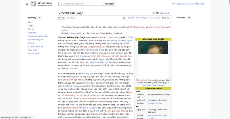 | Offenders: https://vi.wikipedia.org/wiki/Vincent_van_Gogh https://meta.wikimedia.org/w/index.php...a.org/w/index.php |