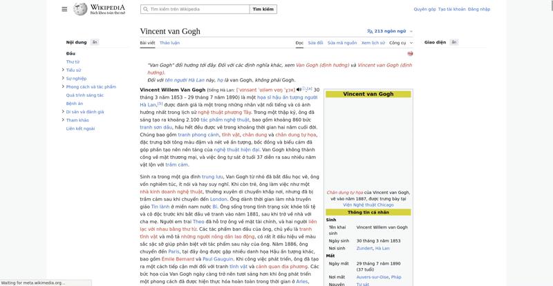 | Offenders: https://vi.wikipedia.org/wiki/Vincent_van_Gogh https://meta.wikimedia.org/w/index.php...a.org/w/index.php |