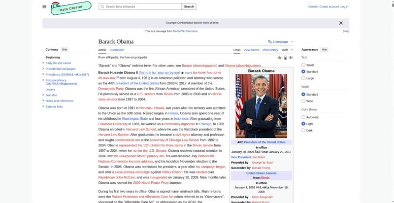 | Offenders: https://upload.wikimedia.org/wikipedia/commons/thumb/e/e7/Cscr-featured.svg/20px...-featured.svg.png https://upload.wikimedia.org/wikipedia/commons/thumb/f/fc/Padlock-silver.svg/20p...ck-silver.svg.png https://upload.wikimedia.org/wikipedia/commons/thumb/4/47/Sound-icon.svg/20px-Sound-icon.svg.png https://upload.wikimedia.org/wikipedia/commons/thumb/8/8d/President_Barack_Obama..._Barack_Obama.jpg https://upload.wikimedia.org/wikipedia/commons/thumb/1/11/Barack_Obama_signature...signature.svg.png https://upload.wikimedia.org/wikipedia/commons/thumb/f/f9/Obama_portrait_crop.jp...portrait_crop.jpg https://upload.wikimedia.org/wikipedia/commons/thumb/4/47/Sound-icon.svg/60px-Sound-icon.svg.png https://upload.wikimedia.beta.wmcloud.org/wikipedia/commons/thumb/7/73/Blue_penc...ue_pencil.svg.png https://upload.wikimedia.org/wikipedia/commons/thumb/8/89/Symbol_book_class2.svg...ok_class2.svg.png https://upload.wikimedia.org/wikipedia/commons/thumb/4/48/Folder_Hexagonal_Icon....onal_Icon.svg.png https://upload.wikimedia.org/wikipedia/commons/thumb/f/fd/Portal-puzzle.svg/20px...al-puzzle.svg.png https://upload.wikimedia.org/wikipedia/commons/thumb/3/36/Seal_of_the_President_...ed_States.svg.png https://upload.wikimedia.org/wikipedia/commons/thumb/1/1b/Yellow_flag_waving.svg...ag_waving.svg.png https://upload.wikimedia.org/wikipedia/commons/thumb/f/f0/Seal_of_the_United_Sta...es_Senate.svg.png https://upload.wikimedia.org/wikipedia/commons/thumb/4/4a/Commons-logo.svg/40px-Commons-logo.svg.png https://upload.wikimedia.org/wikipedia/commons/thumb/2/24/Wikinews-logo.svg/40px...news-logo.svg.png https://upload.wikimedia.org/wikipedia/commons/thumb/f/fa/Wikiquote-logo.svg/40p...uote-logo.svg.png https://upload.wikimedia.org/wikipedia/commons/thumb/4/4c/Wikisource-logo.svg/40...urce-logo.svg.png https://upload.wikimedia.beta.wmcloud.org/wikipedia/commons/thumb/f/ff/Wikidata-...data-logo.svg.png https://upload.wikimedia.org/wikipedia/commons/thumb/b/b8/Barack_Obama_and_Bill_..._Bill_Clinton.jpg https://upload.wikimedia.org/wikipedia/commons/thumb/3/36/Seal_of_the_President_...ed_States.svg.png https://upload.wikimedia.org/wikipedia/commons/thumb/0/01/A_coloured_voting_box....oting_box.svg.png https://upload.wikimedia.org/wikipedia/commons/thumb/8/8a/Loudspeaker.svg/20px-Loudspeaker.svg.png https://upload.wikimedia.org/wikipedia/commons/thumb/2/26/Obama_family_portrait_...he_Green_Room.jpg https://upload.wikimedia.org/wikipedia/commons/thumb/2/22/BlackhawksWhiteHouse20...hiteHouse2010.jpg https://upload.wikimedia.org/wikipedia/commons/thumb/c/ca/Barack_Obama_playing_b...secretaries_2.jpg https://upload.wikimedia.org/wikipedia/commons/thumb/7/77/DIG13623-230.jpg/250px-DIG13623-230.jpg https://upload.wikimedia.org/wikipedia/commons/thumb/3/3d/Obamas_at_church_on_In...tion_Day_2013.jpg https://upload.wikimedia.org/wikipedia/commons/thumb/1/1b/Nuvola_apps_kaboodle.s..._kaboodle.svg.png https://upload.wikimedia.org/wikipedia/commons/thumb/b/b6/Obamamiltondavis1.jpg/...amiltondavis1.jpg https://upload.wikimedia.org/wikipedia/commons/thumb/5/50/2004_Illinois_Senate_r...e_results.svg.png https://upload.wikimedia.org/wikipedia/commons/thumb/f/f1/BarackObamaportrait.jp...Obamaportrait.jpg https://upload.wikimedia.org/wikipedia/commons/thumb/7/79/Lugar-Obama.jpg/250px-Lugar-Obama.jpg https://upload.wikimedia.org/wikipedia/commons/thumb/7/70/Barack_Obama_Iraq_2006...ama_Iraq_2006.jpg https://upload.wikimedia.org/wikipedia/commons/thumb/9/99/Flickr_Obama_Springfie...pringfield_01.jpg https://upload.wikimedia.org/wikipedia/commons/thumb/a/a2/President_George_W._Bu...n_Oval_Office.jpg https://upload.wikimedia.org/wikipedia/commons/thumb/2/24/ElectoralCollege2008.s...llege2008.svg.png https://upload.wikimedia.org/wikipedia/commons/thumb/3/33/P112912PS-0444_-_Presi...Office_-_crop.jpg https://upload.wikimedia.org/wikipedia/commons/thumb/4/44/ElectoralCollege2012.s...llege2012.svg.png https://upload.wikimedia.org/wikipedia/commons/thumb/d/d7/US_President_Barack_Ob...e_-_2009Jan20.jpg https://upload.wikimedia.org/wikipedia/commons/thumb/3/32/Barack_Obama_addresses...ss_2009-02-24.jpg https://upload.wikimedia.org/wikipedia/commons/thumb/6/63/Obama_cabinet_meeting_...eting_2009-11.jpg https://upload.wikimedia.org/wikipedia/commons/thumb/8/86/White_House_rainbow_fo...-sex_marriage.jpg https://upload.wikimedia.org/wikipedia/commons/thumb/a/a5/20090124_WeeklyAddress...lyAddress.ogv.jpg https://upload.wikimedia.org/wikipedia/commons/thumb/f/fc/U.S._Total_Deficits_vs...ses_2001-2010.png https://upload.wikimedia.org/wikipedia/commons/thumb/2/25/US_Employment_Statisti...tatistics.svg.png https://upload.wikimedia.org/wikipedia/commons/thumb/6/63/Obama-venice-la.jpg/25...ama-venice-la.jpg https://upload.wikimedia.org/wikipedia/commons/thumb/f/f5/Obama_signs_health_car...care-20100323.jpg https://upload.wikimedia.org/wikipedia/commons/thumb/7/79/PPACA_Premium_Chart.jp...Premium_Chart.jpg https://upload.wikimedia.org/wikipedia/commons/thumb/8/84/Percentage_of_Individu...%2C_1963-2015.png https://upload.wikimedia.org/wikipedia/commons/thumb/4/4b/Barack_Obama_visiting_...rora_shooting.jpg https://upload.wikimedia.org/wikipedia/commons/thumb/4/42/Barack_Obama_at_Cairo_...rsity_cropped.jpg https://upload.wikimedia.org/wikipedia/commons/thumb/8/83/Barack_Obama_foreign_t...ign_trips.svg.png https://upload.wikimedia.org/wikipedia/commons/thumb/7/76/Barack_Obama_and_Matte...ber_2016%2C_1.jpg https://upload.wikimedia.org/wikipedia/commons/thumb/b/be/David_Cameron_and_Bara...it_in_Toronto.jpg https://upload.wikimedia.org/wikipedia/commons/thumb/1/1b/Barack_Obama_welcomes_...e_Oval_Office.jpg https://upload.wikimedia.org/wikipedia/commons/thumb/f/f7/Vladimir_Putin_and_Bar...5-09-29%29_04.jpg https://upload.wikimedia.org/wikipedia/commons/thumb/1/12/President_Obama_on_Dea...bin_Laden.ogv.jpg https://upload.wikimedia.org/wikipedia/commons/thumb/4/4c/Wikisource-logo.svg/20...urce-logo.svg.png https://upload.wikimedia.org/wikipedia/commons