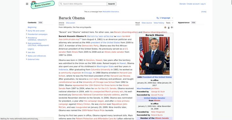 | Offenders: https://en.wikipedia.beta.wmcloud.org/wiki/Barack_Obama https://meta.wikimedia.beta.wmcloud.org/w/index.php...d.org/w/index.php |