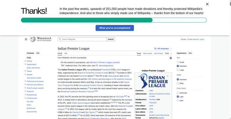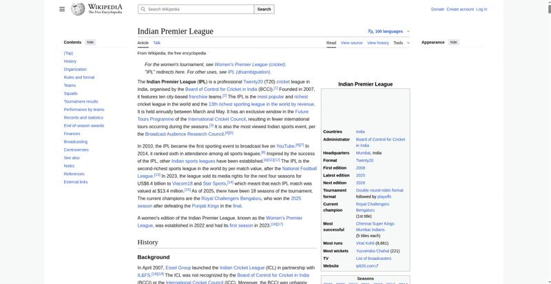 | Title | Indian Premier League - Wikipedia |