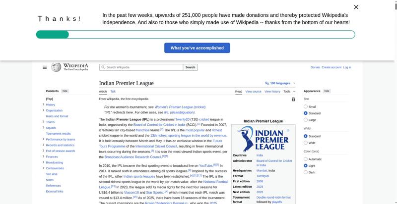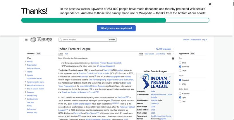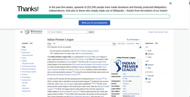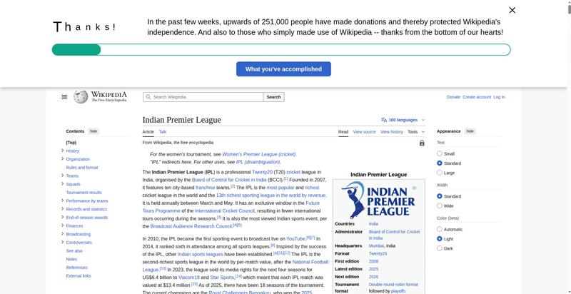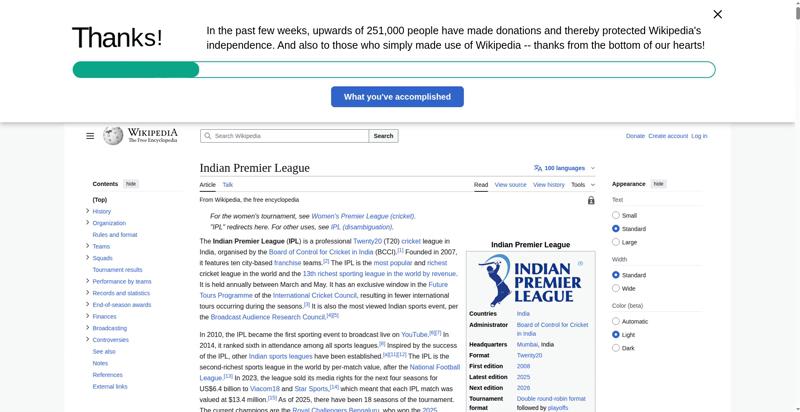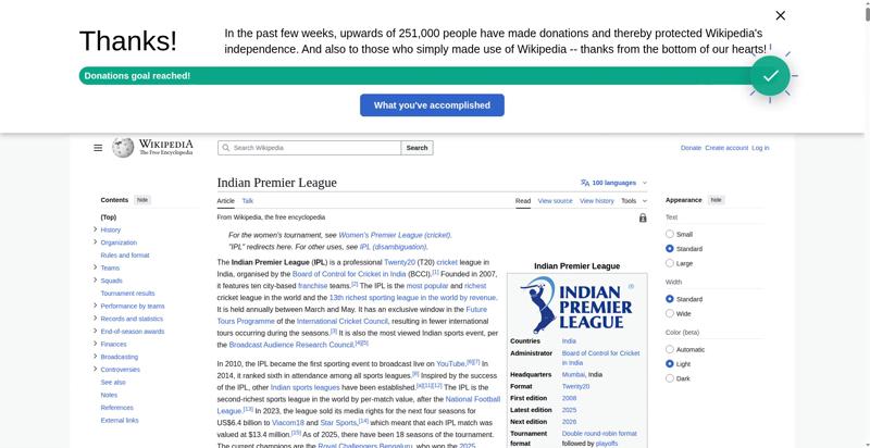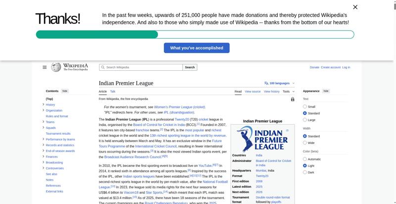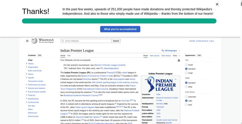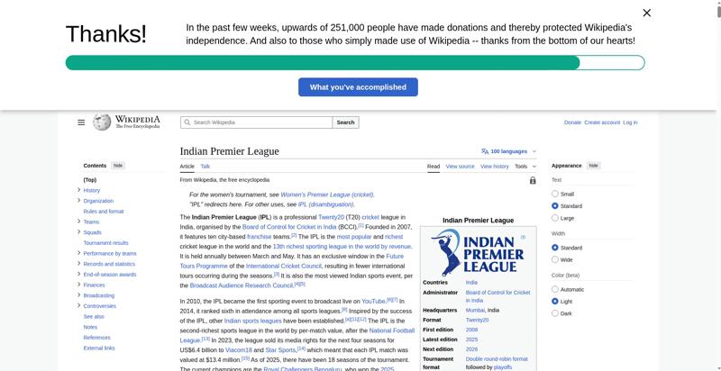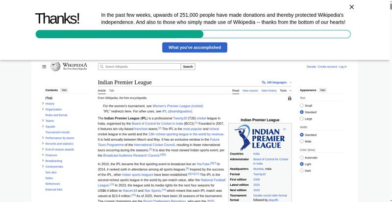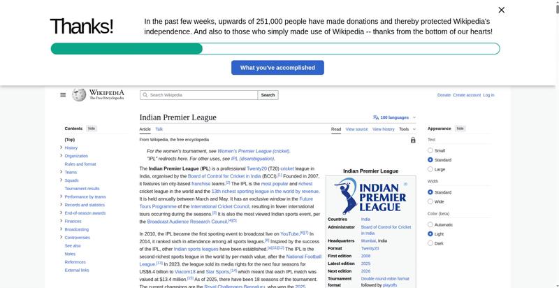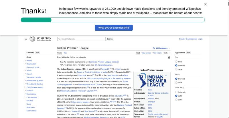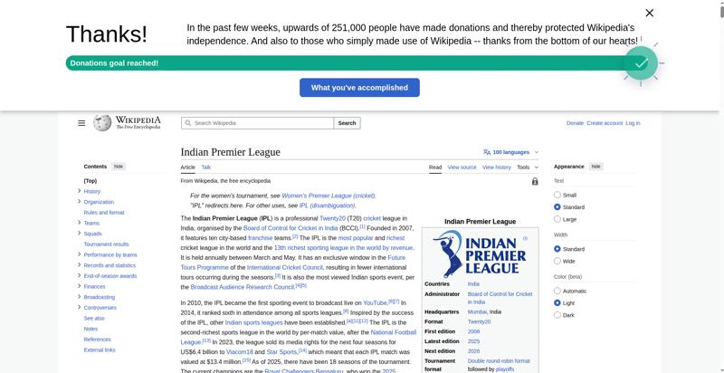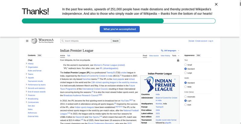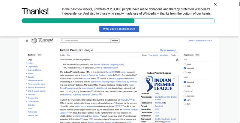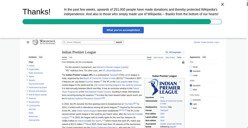 | Title | Indian Premier League - Wikipedia |