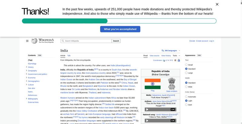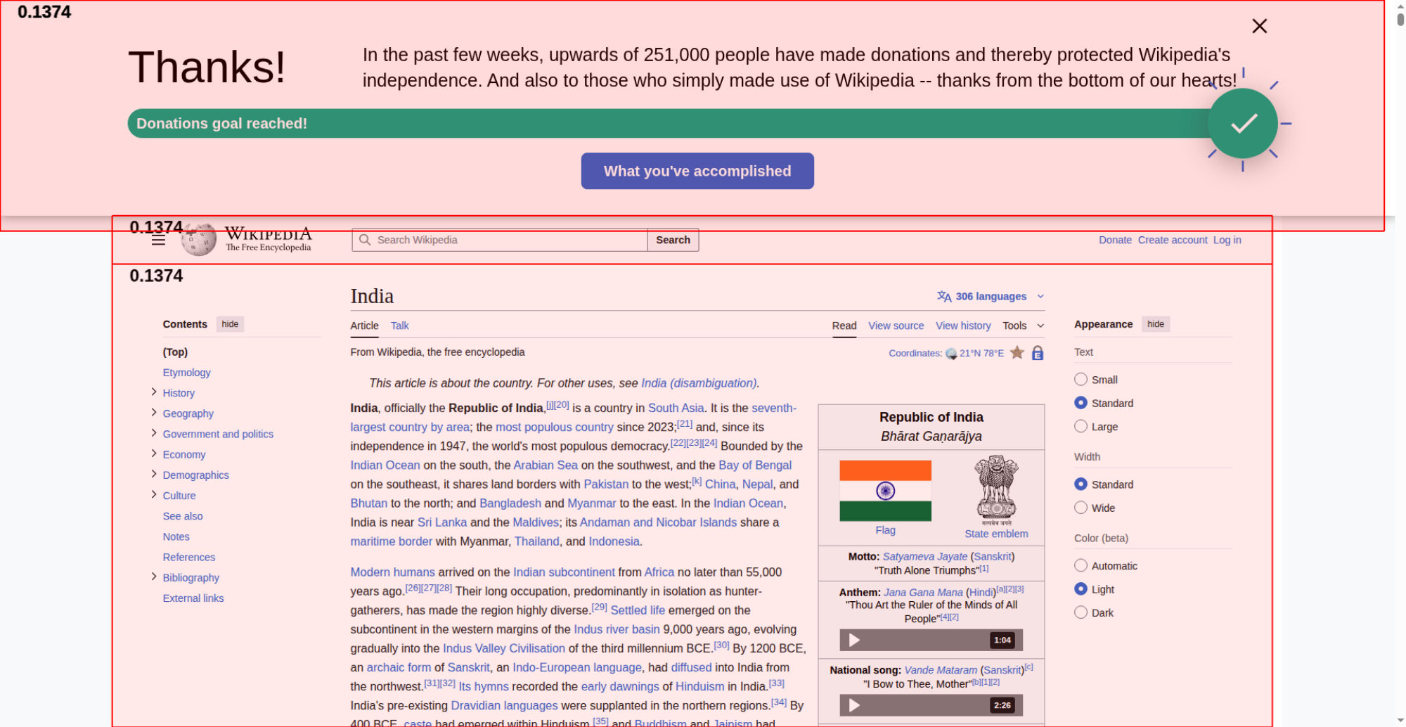 | INFO | https://en.wikipedia.org/w/load.php?lang=en&modules=ext.centralNotice.bannerHistoryLogger%2CchoiceData%2Cdisplay%2CgeoIP%2CimpressionDiet%2CkvStore%2ClargeBannerLimit%2ClegacySupport%2CstartUp%7Cext.centralauth.ForeignApi%2Ccentralautologin%7Cext.checkUser.clientHints%7Cext.cite.ux-enhancements%7Cext.cx.eventlogging.campaigns%7Cext.cx.model%7Cext.cx.uls.quick.actions%7Cext.echo.centralauth%7Cext.eventLogging%2CnavigationTiming%2Cpopups%2CwikimediaEvents%2CxLab%7Cext.eventLogging.metricsPlatform%7Cext.growthExperiments.SuggestedEditSession%7Cext.phonos.init%7Cext.scribunto.logs%7Cext.tmh.OgvJsSupport%2Cplayer%7Cext.uls.common%2Cinterface%2Cpreferences%2Cwebfonts%7Cext.urlShortener.toolbar%7Cext.wikimediaEvents.xLab%7Cjquery%2Coojs%2Csite%7Cjquery.client%2CmakeCollapsible%2CtextSelection%7Cjquery.uls.data%7Cmediawiki.ForeignApi%2CString%2CTitle%2Capi%2Cbase%2Ccldr%2Ccookie%2Cexperiments%2CjqueryMsg%2Clanguage%2Crouter%2Cstorage%2Ctoc%2Cuser%2Cutil%2CvisibleTimeout%7Cmediawiki.ForeignApi.core%7Cmediawiki.editfont.styles%7Cmediawiki.libs.pluralruleparser%7Cmediawiki.page.gallery%2Cmedia%2Cready%7Cmediawiki.page.watch.ajax%7Cmmv.bootstrap%2Ccodex%7Cmw.cx.SiteMapper%7Cskins.vector.clientPreferences%2Cjs%7Cskins.vector.icons.js%7Cwikibase.client.vector-2022%7Cwikibase.databox.fromWikidata&skin=vector-2022&version=onomd 227:971 "mw.xLab.getExperiment(): The \"fy25-26-we-1-1-19-mobile-section-dead-end-phase-2\" experiment isn't registered. Is the experiment configured and running?" |