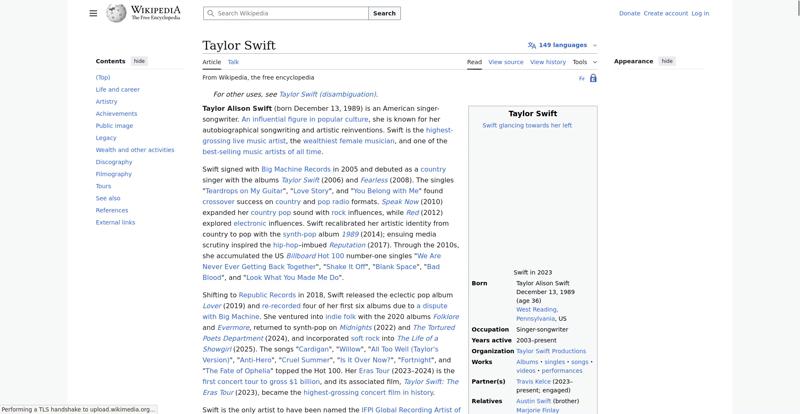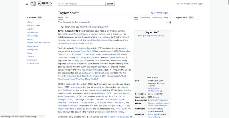 | Offenders: https://upload.wikimedia.org/wikipedia/en/thumb/e/e7/Cscr-featured.svg/20px-Cscr-featured.svg.png https://upload.wikimedia.org/wikipedia/en/thumb/8/8c/Extended-protection-shackle...n-shackle.svg.png https://upload.wikimedia.org/wikipedia/commons/thumb/b/b1/Taylor_Swift_at_the_20...wards_%283%29.png https://upload.wikimedia.org/wikipedia/en/thumb/8/8a/OOjs_UI_icon_edit-ltr-progr...ogressive.svg.png https://upload.wikimedia.org/wikipedia/commons/thumb/e/e6/Taylor_Swift_signature...signature.svg.png https://upload.wikimedia.org/wikipedia/commons/thumb/1/15/Taylor_Swift_at_Yahoo_...%28cropped%29.jpg https://upload.wikimedia.org/wikipedia/commons/thumb/e/e8/TaylorSwiftApr09.jpg/2...lorSwiftApr09.jpg https://upload.wikimedia.org/wikipedia/commons/thumb/6/6e/Taylor_Swift_2011crop....wift_2011crop.jpg https://upload.wikimedia.org/wikipedia/commons/thumb/b/b2/Taylor_Swift_Red_Tour_...our_2%2C_2013.jpg https://upload.wikimedia.org/wikipedia/commons/thumb/0/04/Taylor_Swift_045_%2817...7682880264%29.jpg https://upload.wikimedia.org/wikipedia/commons/thumb/7/7e/Taylor_Swift_Reputatio...%28cropped%29.jpg https://upload.wikimedia.org/wikipedia/commons/thumb/d/d9/191125_Taylor_Swift_at..._Music_Awards.png https://upload.wikimedia.org/wikipedia/commons/thumb/7/76/Taylor_Swift_2022_info..._2022_infobox.jpg https://upload.wikimedia.org/wikipedia/commons/thumb/5/5d/Taylor_Swift_The_Eras_...%28cropped%29.jpg https://upload.wikimedia.org/wikipedia/commons/thumb/8/87/Gnome-mime-sound-openc...enclipart.svg.png https://upload.wikimedia.org/wikipedia/commons/thumb/7/7c/Taylor_Swift_Sydney.jp..._Swift_Sydney.jpg https://upload.wikimedia.org/wikipedia/commons/thumb/1/1f/Taylor_Swift_-_Reputat...%28cropped%29.jpg https://upload.wikimedia.org/wikipedia/commons/thumb/1/1d/Taylor_Swift_2009_MTV_...%28cropped%29.jpg https://upload.wikimedia.org/wikipedia/commons/thumb/0/0a/5.3.10TaylorSwiftByDav...avidShankbone.jpg https://upload.wikimedia.org/wikipedia/commons/thumb/5/5a/Taylor_Swift_wax_figur...%28cropped%29.jpg https://upload.wikimedia.org/wikipedia/commons/thumb/c/cf/Taylor_Swift_for_Keds....wift_for_Keds.jpg https://upload.wikimedia.org/wikipedia/commons/thumb/6/6c/Audio-input-microphone...ut-microphone.png https://upload.wikimedia.org/wikipedia/en/thumb/4/4a/Commons-logo.svg/20px-Commons-logo.svg.png https://upload.wikimedia.org/wikipedia/commons/thumb/2/24/Wikinews-logo.svg/40px...news-logo.svg.png https://upload.wikimedia.org/wikipedia/commons/thumb/f/fa/Wikiquote-logo.svg/40p...uote-logo.svg.png https://upload.wikimedia.org/wikipedia/commons/thumb/f/ff/Wikidata-logo.svg/40px...data-logo.svg.png https://upload.wikimedia.org/wikipedia/en/thumb/9/96/Symbol_category_class.svg/2...ory_class.svg.png https://upload.wikimedia.org/wikipedia/commons/d/d6/Lock-gray-alt-2.svg https://upload.wikimedia.org/wikipedia/commons/a/aa/Lock-red-alt-2.svg https://upload.wikimedia.org/wikipedia/commons/4/4d/Icon_pdf_file.png https://upload.wikimedia.org/wikipedia/commons/6/65/Lock-green.svg https://en.wikipedia.org/wiki/Special:CentralAutoLogin/start?useformat=desktop&type=script&usesul3=1 https://meta.wikimedia.org/w/index.php...a.org/w/index.php https://auth.wikimedia.org/metawiki/wiki/Special:CentralAutoLogin/checkLoggedIn...gin/checkLoggedIn https://upload.wikimedia.org/wikipedia/commons/b/be/Franziska_Heine.png |
