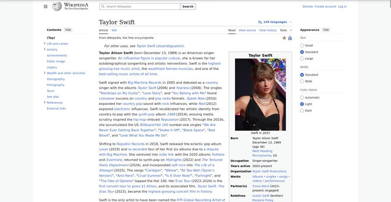 | Offenders: https://en.wikipedia.org/wiki/Taylor_Swift https://meta.wikimedia.org/w/index.php...a.org/w/index.php |