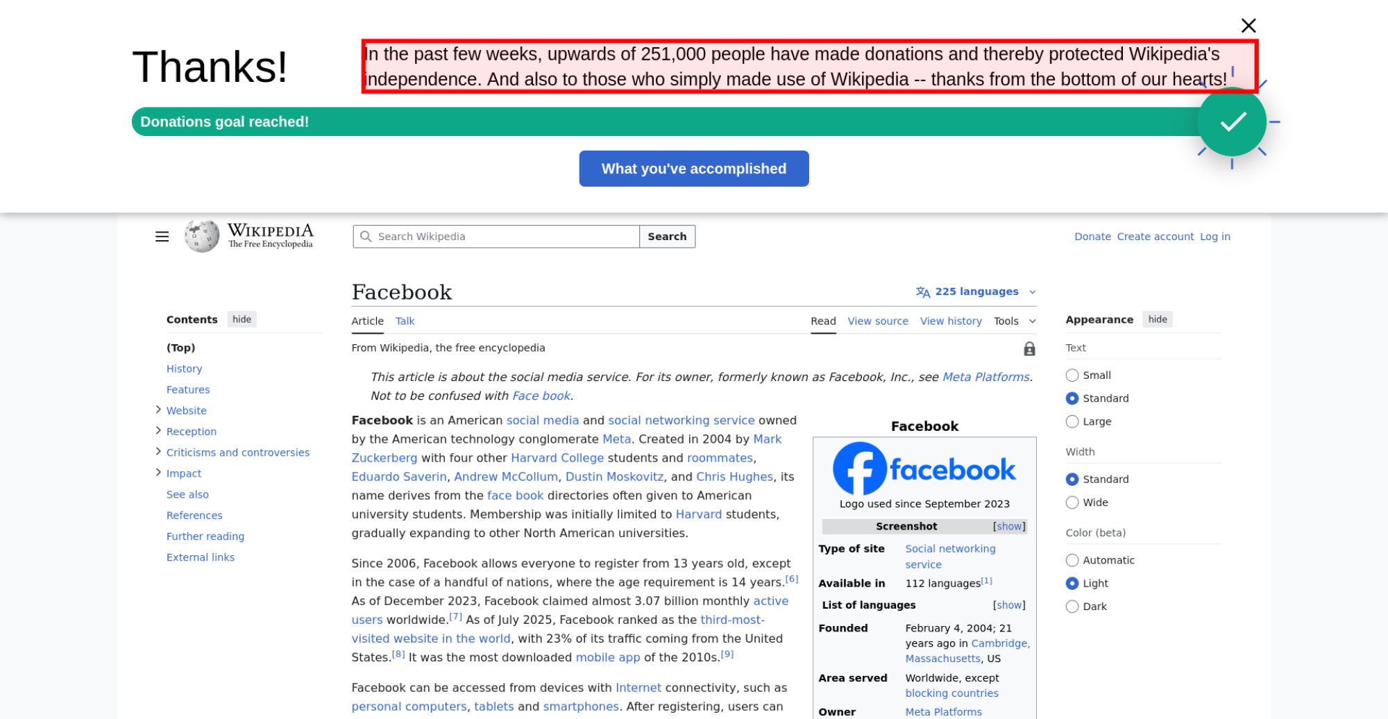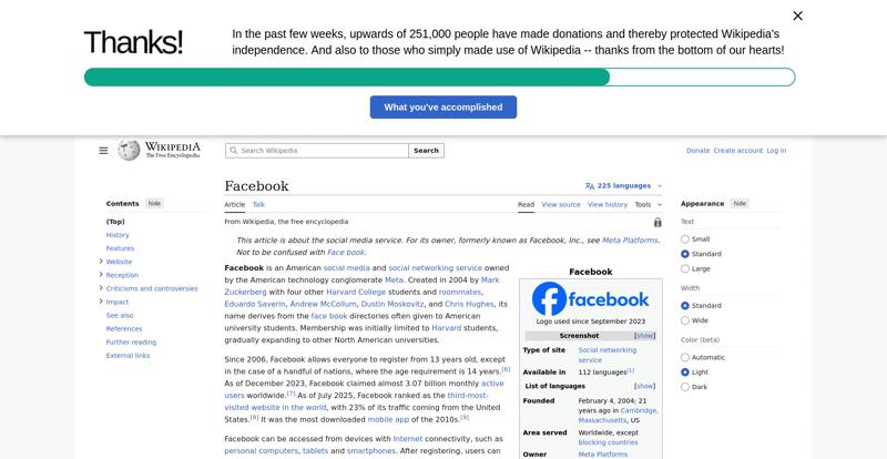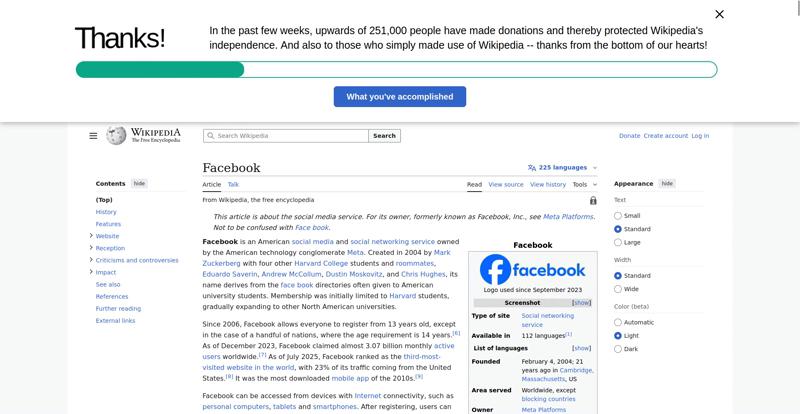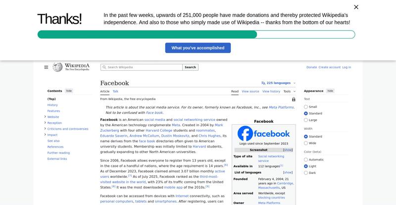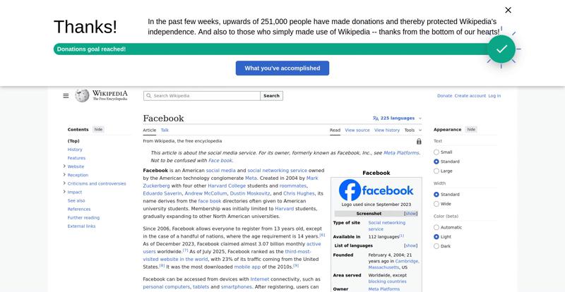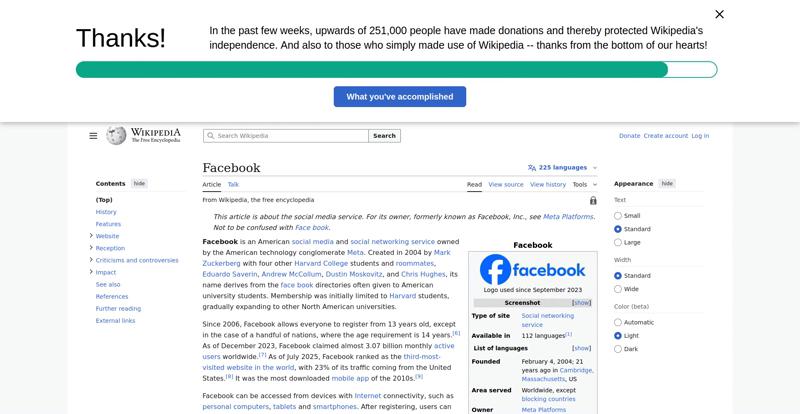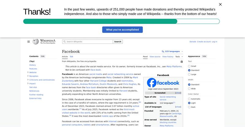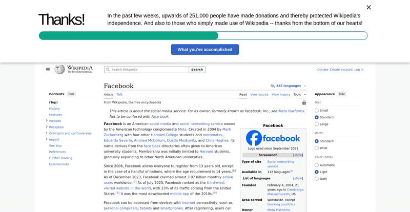 | Offenders: https://upload.wikimedia.org/wikipedia/en/thumb/1/1b/Semi-protection-shackle.svg...n-shackle.svg.png https://upload.wikimedia.org/wikipedia/commons/thumb/b/b9/2023_Facebook_icon.svg...book_icon.svg.png https://upload.wikimedia.org/wikipedia/commons/thumb/9/93/Facebook_logo_%282023%...282023%29.svg.png https://upload.wikimedia.org/wikipedia/en/6/64/Facebook_user_page.png https://upload.wikimedia.org/wikipedia/commons/thumb/b/b0/Increase2.svg/20px-Increase2.svg.png https://upload.wikimedia.org/wikipedia/commons/thumb/0/05/Meta_Platforms_Inc._lo...ropped%29.svg.png https://upload.wikimedia.org/wikipedia/commons/3/38/Facebook_Like_React.png https://upload.wikimedia.org/wikipedia/commons/thumb/f/fc/MarkZuckerberg-crop.jp...ckerberg-crop.jpg https://upload.wikimedia.org/wikipedia/en/thumb/1/12/Original-facebook.jpg/250px...inal-facebook.jpg https://upload.wikimedia.org/wikipedia/commons/thumb/0/06/Facebook.svg/250px-Facebook.svg.png https://upload.wikimedia.org/wikipedia/commons/thumb/6/69/Screen_of_Facebook_%28...ebook_%282%29.PNG https://upload.wikimedia.org/wikipedia/commons/thumb/f/f4/Facebook_t-shirt_with_...d_for_Hackers.jpg https://upload.wikimedia.org/wikipedia/commons/thumb/5/5d/Population_pyramid_of_..._users_by_age.png https://upload.wikimedia.org/wikipedia/commons/thumb/9/9c/Facebook_censorship.sv...ensorship.svg.png https://upload.wikimedia.org/wikipedia/commons/thumb/f/f3/PRISM_Collection_Detai...ction_Details.jpg https://upload.wikimedia.org/wikipedia/commons/thumb/6/62/Onavo_logo.png/250px-Onavo_logo.png https://upload.wikimedia.org/wikipedia/commons/thumb/2/26/Hands_Off%21_protest%2...5%2C_2025-053.jpg https://upload.wikimedia.org/wikipedia/commons/thumb/c/c9/Berlin_%289163009052%2...9163009052%29.jpg https://upload.wikimedia.org/wikipedia/commons/thumb/6/61/Ad-tech_London_2010_%2..._2010_%285%29.JPG https://upload.wikimedia.org/wikipedia/commons/thumb/2/27/2011_Egyptian_protests...26_jan25_card.jpg https://upload.wikimedia.org/wikipedia/commons/thumb/9/99/SF_Pride_2014_-_Stierc...4_-_Stierch_7.jpg https://upload.wikimedia.org/wikipedia/commons/thumb/2/2a/Industry5.svg/40px-Industry5.svg.png https://upload.wikimedia.org/wikipedia/commons/thumb/f/f9/Crystal_Clear_app_linn...ghborhood.svg.png https://upload.wikimedia.org/wikipedia/en/thumb/0/06/Wiktionary-logo-v2.svg/40px...y-logo-v2.svg.png https://upload.wikimedia.org/wikipedia/en/thumb/4/4a/Commons-logo.svg/20px-Commons-logo.svg.png https://upload.wikimedia.org/wikipedia/commons/thumb/2/24/Wikinews-logo.svg/40px...news-logo.svg.png https://upload.wikimedia.org/wikipedia/commons/thumb/f/fa/Wikiquote-logo.svg/40p...uote-logo.svg.png https://upload.wikimedia.org/wikipedia/commons/thumb/3/32/Scholia_logo.svg/40px-Scholia_logo.svg.png https://upload.wikimedia.org/wikipedia/en/thumb/8/8a/OOjs_UI_icon_edit-ltr-progr...ogressive.svg.png https://upload.wikimedia.org/wikipedia/commons/a/aa/Lock-red-alt-2.svg https://upload.wikimedia.org/wikipedia/commons/4/4d/Icon_pdf_file.png https://upload.wikimedia.org/wikipedia/commons/6/65/Lock-green.svg https://upload.wikimedia.org/wikipedia/commons/d/d6/Lock-gray-alt-2.svg https://en.wikipedia.org/wiki/Special:CentralAutoLogin/start?useformat=desktop&type=script&usesul3=1 https://meta.wikimedia.org/w/index.php...a.org/w/index.php https://auth.wikimedia.org/metawiki/wiki/Special:CentralAutoLogin/checkLoggedIn...gin/checkLoggedIn https://upload.wikimedia.org/wikipedia/commons/b/be/Franziska_Heine.png |