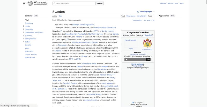 | Offenders: https://upload.wikimedia.org/wikipedia/en/thumb/1/1b/Semi-protection-shackle.svg...n-shackle.svg.png https://upload.wikimedia.org/wikipedia/en/thumb/4/4c/Flag_of_Sweden.svg/250px-Flag_of_Sweden.svg.png https://upload.wikimedia.org/wikipedia/commons/thumb/e/e5/Great_coat_of_arms_of_...of_Sweden.svg.png https://upload.wikimedia.org/wikipedia/commons/thumb/c/c2/EU-Sweden_%28orthograp...ection%29.svg.png https://upload.wikimedia.org/wikipedia/commons/thumb/0/06/EU-Sweden.svg/330px-EU-Sweden.svg.png https://upload.wikimedia.org/wikipedia/commons/thumb/7/74/Increase_Neutral.svg/2...e_Neutral.svg.png https://upload.wikimedia.org/wikipedia/commons/thumb/b/b0/Increase2.svg/20px-Increase2.svg.png https://upload.wikimedia.org/wikipedia/commons/thumb/5/59/Increase_Negative.svg/..._Negative.svg.png https://upload.wikimedia.org/wikipedia/commons/thumb/a/ac/Vendel_I_helmet_456057...helmet_456057.jpg https://upload.wikimedia.org/wikipedia/commons/thumb/a/a7/Vikings-Voyages.png/33...kings-Voyages.png https://upload.wikimedia.org/wikipedia/commons/thumb/b/bd/Bildsten_med_skepp_800...de%2C_Gotland.jpg https://upload.wikimedia.org/wikipedia/commons/thumb/4/48/Map_of_Sweden_ca_1280....weden_ca_1280.png https://upload.wikimedia.org/wikipedia/commons/thumb/5/58/Gustav_Vasa.jpg/250px-Gustav_Vasa.jpg https://upload.wikimedia.org/wikipedia/commons/thumb/c/c6/Gustave_Adolphe_at_Bre...lter-f3706497.jpg https://upload.wikimedia.org/wikipedia/commons/thumb/9/90/Swedish_Empire.svg/250...sh_Empire.svg.png https://upload.wikimedia.org/wikipedia/commons/thumb/e/e9/Marten%27s_Poltava.jpg...n%27s_Poltava.jpg https://upload.wikimedia.org/wikipedia/commons/thumb/c/c6/Starvation_image_from_...eslandet_1867.jpg https://upload.wikimedia.org/wikipedia/commons/thumb/4/4d/Farewell_to_home%2C_G%...%28cropped%29.jpg https://upload.wikimedia.org/wikipedia/commons/thumb/e/e2/Olivecrona_erlander_38..._erlander_380.jpg https://upload.wikimedia.org/wikipedia/commons/thumb/7/7c/Tratado_de_Lisboa_13_1...007_%28081%29.jpg https://upload.wikimedia.org/wikipedia/commons/thumb/7/72/Vy_mot_Stora_Sj%C3%B6f...n_Saltoluokta.jpg https://upload.wikimedia.org/wikipedia/commons/thumb/b/b1/Sand%C3%B6n_-_KMB_-_16...6001000454384.jpg https://upload.wikimedia.org/wikipedia/commons/thumb/2/2f/Koppen-Geiger_Map_v2_S...80%932020.svg.png https://upload.wikimedia.org/wikipedia/commons/thumb/e/e3/Sweden_Vegetation_Zone...etation_Zones.jpg https://upload.wikimedia.org/wikipedia/commons/thumb/6/67/King_Carl_XVI_Gustaf_a..._2009_Cropped.png https://upload.wikimedia.org/wikipedia/commons/thumb/c/ca/Ulf_Kristersson_on_29_..._29_June_2023.jpg https://upload.wikimedia.org/wikipedia/commons/thumb/3/38/Rosenbad_2006.jpg/330px-Rosenbad_2006.jpg https://upload.wikimedia.org/wikipedia/commons/thumb/0/00/Riksdag.ipred_b9dn510_..._b9dn510_4451.jpg https://upload.wikimedia.org/wikipedia/commons/thumb/d/da/SWE-Map_Kommuner2007.s...muner2007.svg.png https://upload.wikimedia.org/wikipedia/commons/thumb/0/07/Hogsta_domstolen_Stock...len_Stockholm.jpg https://upload.wikimedia.org/wikipedia/commons/thumb/3/39/P20230705AS-0417_%2853...3233830047%29.jpg https://upload.wikimedia.org/wikipedia/commons/thumb/e/e3/Saab_JAS_39_Gripen_at_...tered%29_copy.jpg https://upload.wikimedia.org/wikipedia/commons/thumb/3/30/Stridsfordon_90_Reving...evinge_2012-2.jpg https://upload.wikimedia.org/wikipedia/commons/thumb/3/3c/Volvo_EX90_Auto_Zueric...2024_DSC_6147.jpg https://upload.wikimedia.org/wikipedia/commons/thumb/d/d1/IKEA_%288020223012%29....8020223012%29.jpg https://upload.wikimedia.org/wikipedia/commons/thumb/6/64/H%26M_Canal_City_Hakat...y_Hakata_shop.JPG https://upload.wikimedia.org/wikipedia/commons/thumb/2/20/Spotify_App_%282374588...3745887894%29.jpg https://upload.wikimedia.org/wikipedia/commons/thumb/1/1d/Ringhals.JPG/250px-Ringhals.JPG https://upload.wikimedia.org/wikipedia/commons/thumb/0/01/%C3%98resund_Bridge_fr...eptember_2015.jpg https://upload.wikimedia.org/wikipedia/commons/thumb/e/ed/E6-E20_Olskroksmotet_i...in_Gothenburg.png https://upload.wikimedia.org/wikipedia/commons/thumb/d/d0/Hall%2C_Stockholm_Cent...ntral_Station.jpg https://upload.wikimedia.org/wikipedia/commons/thumb/6/6e/AlfredNobel_adjusted.j...obel_adjusted.jpg https://upload.wikimedia.org/wikipedia/commons/thumb/b/b2/Swedishpopdensity.svg/...opdensity.svg.png https://upload.wikimedia.org/wikipedia/commons/thumb/f/f4/Katarina_kyrka_Februar...ruary_2015_02.jpg https://upload.wikimedia.org/wikipedia/commons/thumb/6/64/Uppsala_University_202...iversity_2023.jpg https://upload.wikimedia.org/wikipedia/commons/thumb/c/cb/ABBA_-_TopPop_1974_5.p...TopPop_1974_5.png https://upload.wikimedia.org/wikipedia/commons/thumb/4/41/%C3%96stermalm%2C_Stoc...amio_%2876%29.jpg https://upload.wikimedia.org/wikipedia/commons/thumb/1/1a/00_1110_Kalmar_domkyrk...lmar_domkyrka.jpg https://upload.wikimedia.org/wikipedia/commons/thumb/6/65/Sveriges_Television%2C...levision%2C_2.jpg https://upload.wikimedia.org/wikipedia/commons/thumb/6/6c/Portrait_of_August_Str...rd_Bergh_1905.jpg https://upload.wikimedia.org/wikipedia/commons/thumb/9/92/Pippi_Langkous_in_Nede..._1_%28crop%29.jpg https://upload.wikimedia.org/wikipedia/commons/thumb/f/f4/Valborg_2132_%28713599...7135992133%29.jpg https://upload.wikimedia.org/wikipedia/commons/thumb/8/85/Lucia_2018_NZ7_1187_%2...6327820671%29.jpg https://upload.wikimedia.org/wikipedia/commons/thumb/0/02/Sveriges_Nationaldag_2...ionaldag_2014.jpg https://upload.wikimedia.org/wikipedia/commons/thumb/2/22/Bj%C3%B6rn_Borg_in_akt...elnr_930-2090.jpg https://upload.wikimedia.org/wikipedia/en/thumb/4/4c/Flag_of_Sweden.svg/40px-Flag_of_Sweden.svg.png https://upload.wikimedia.org/wikipedia/en/thumb/0/06/Wiktionary-logo-v2.svg/40px...y-logo-v2.svg.png https://upload.wikimedia.org/wikipedia/en/thumb/4/4a/Commons-logo.svg/20px-Commons-logo.svg.png https://upload.wikimedia.org/wikipedia/commons/thumb/2/24/Wikinews-logo.svg/40px...news-logo.svg.png https://upload.wikimedia.org/wikipedia/commons/thumb/f/fa/Wiki