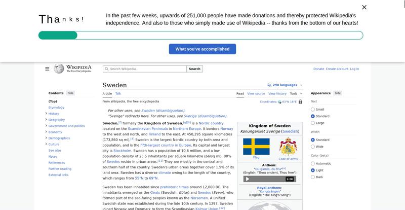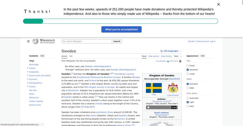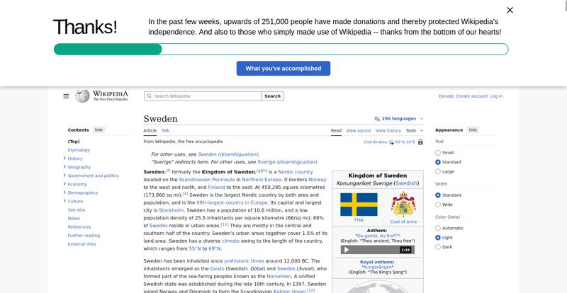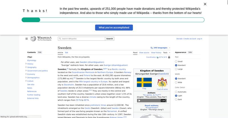 | Offenders: https://en.wikipedia.org/static/images/mobile/copyright/wikipedia-wordmark-en.svg https://en.wikipedia.org/static/images/mobile/copyright/wikipedia-tagline-en.svg https://upload.wikimedia.org/wikipedia/en/thumb/4/4c/Flag_of_Sweden.svg/250px-Flag_of_Sweden.svg.png https://upload.wikimedia.org/wikipedia/commons/thumb/e/e3/Sweden_Vegetation_Zone...etation_Zones.jpg |