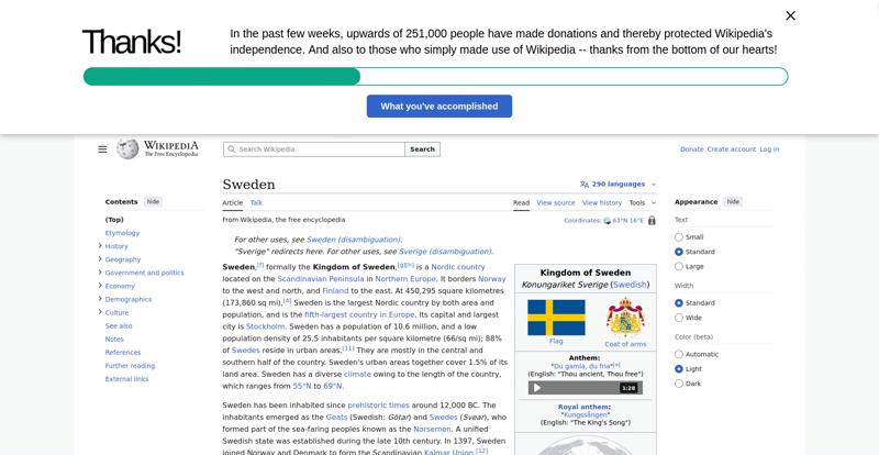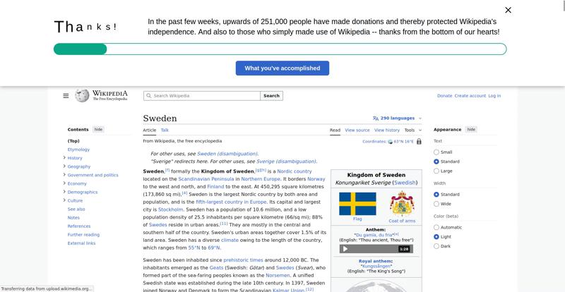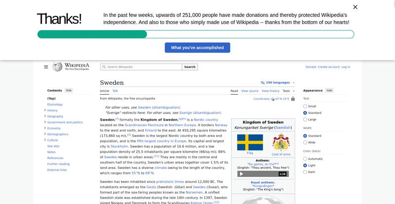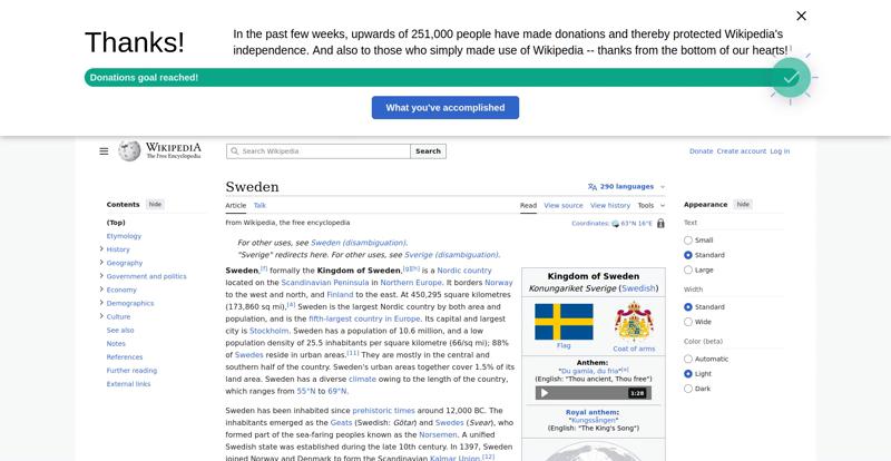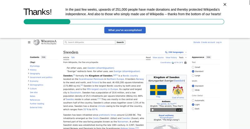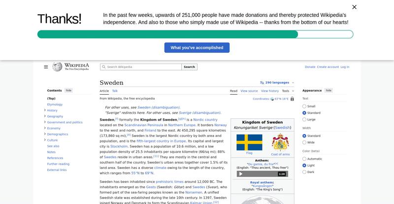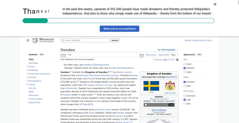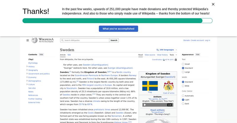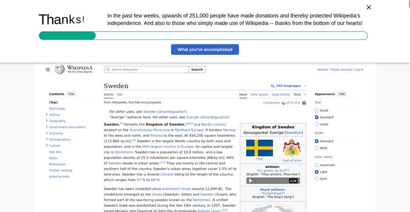 | Offenders: https://en.wikipedia.org/static/images/mobile/copyright/wikipedia-wordmark-en.svg https://en.wikipedia.org/static/images/mobile/copyright/wikipedia-tagline-en.svg https://upload.wikimedia.org/wikipedia/en/thumb/4/4c/Flag_of_Sweden.svg/250px-Flag_of_Sweden.svg.png https://upload.wikimedia.org/wikipedia/commons/thumb/e/e3/Sweden_Vegetation_Zone...etation_Zones.jpg |