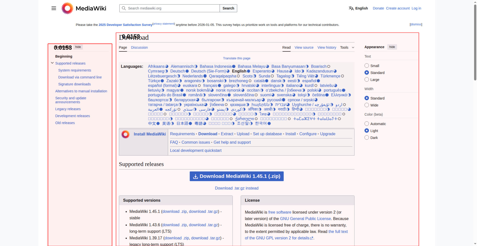 | WARNING | https://www.mediawiki.org/wiki/Download 1042:52 "This page is using the deprecated ResourceLoader module \"mediawiki.ui.button\".\n[1.41] Please use Codex. See migration guidelines: https://www.mediawiki.org/wiki/Codex/Migrating_from_MediaWiki_UI" |