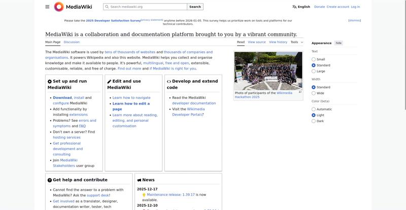 <img src="//upload.wikimedia.org/wikipedia/commons/thumb/e/e4/Wikimedia_Hackathon_2025_Group_photo_from_drone.jpg/330px-Wikimedia_Hackathon_2025_Group_photo_from_drone.jpg" decoding="async" width="320" height="180" class="mw-file-element" srcset="//upload.wikimedia.org/wikipedia/commons/thumb/e/e4/Wikimedia_Hackathon_2025_Group_photo_from_drone.jpg/500px-Wikimedia_Hackathon_2025_Group_photo_from_drone.jpg 1.5x, //upload.wikimedia.org/wikipedia/commons/thumb/e/e4/Wikimedia_Hackathon_2025_Group_photo_from_drone.jpg/960px-Wikimedia_Hackathon_2025_Group_photo_from_drone.jpg 2x" data-file-width="3775" data-file-height="2119">