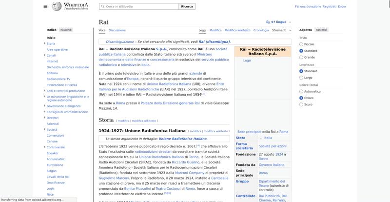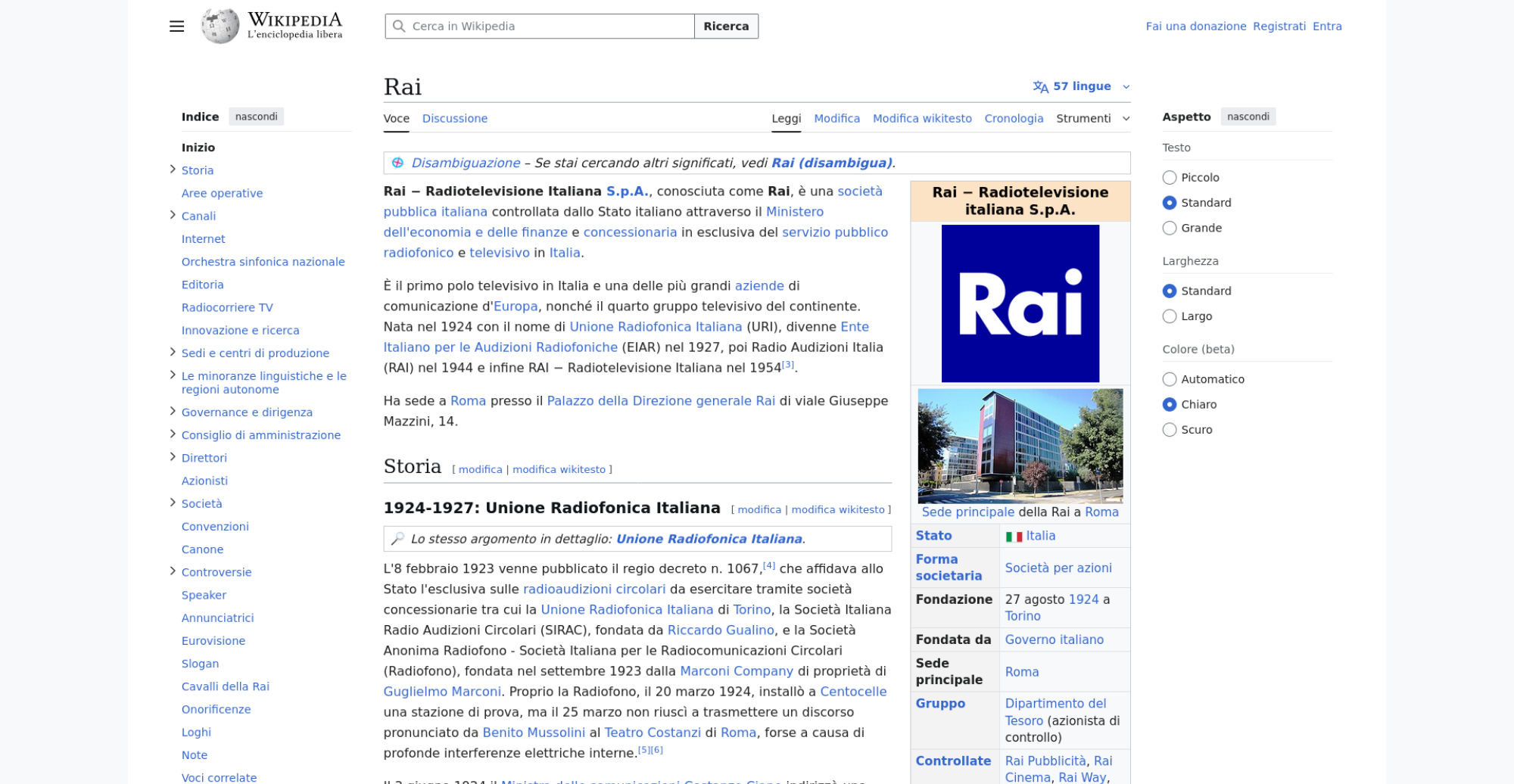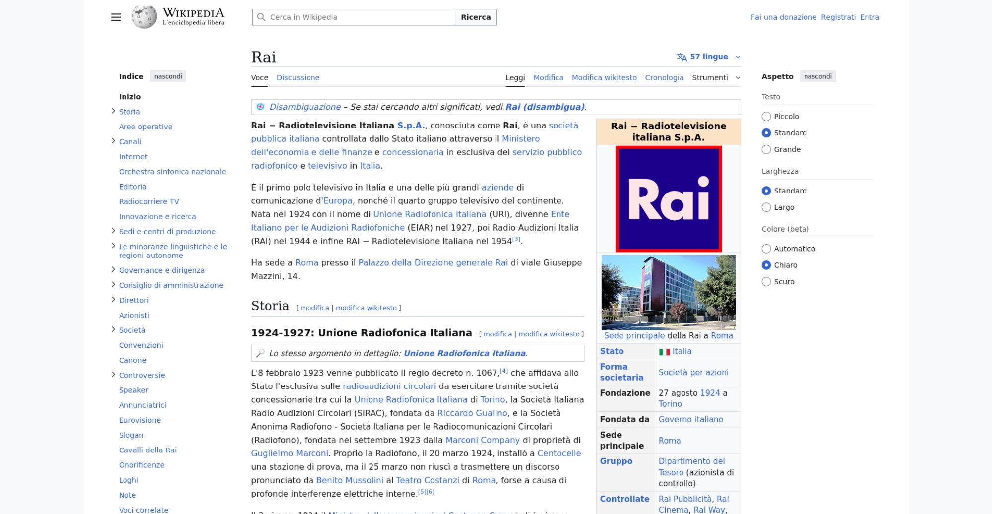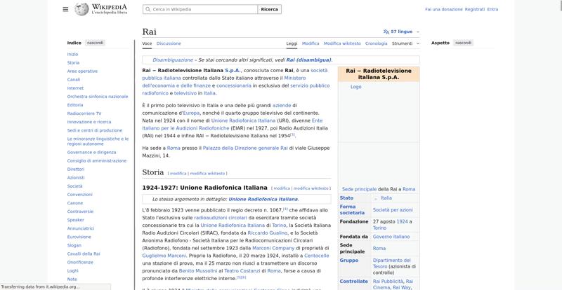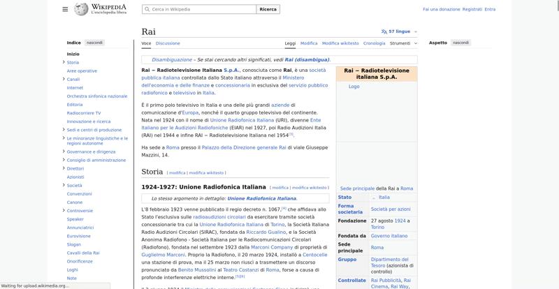 <img alt="Logo" resource="//it.wikipedia.org/wiki/File:Logo_of_RAI_(2016).svg" src="//upload.wikimedia.org/wikipedia/commons/thumb/8/88/Logo_of_RAI_%282016%29.svg/250px-Logo_of_RAI_%282016%29.svg.png" decoding="async" data-file-width="512" data-file-height="512" data-file-type="drawing" height="200" width="200" srcset="//upload.wikimedia.org/wikipedia/commons/thumb/8/88/Logo_of_RAI_%282016%29.svg/330px-Logo_of_RAI_%282016%29.svg.png 1.5x, //upload.wikimedia.org/wikipedia/commons/thumb/8/88/Logo_of_RAI_%282016%29.svg/500px-Logo_of_RAI_%282016%29.svg.png 2x" class="mw-file-element">