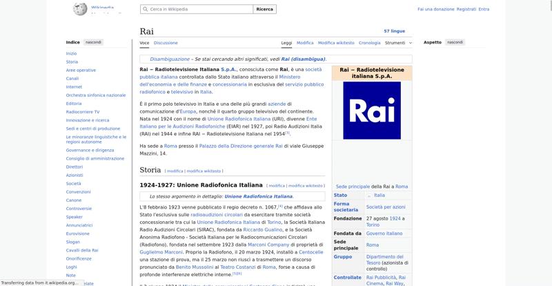 | Offenders: https://upload.wikimedia.org/wikipedia/commons/thumb/b/bc/Nota_disambigua.svg/20...isambigua.svg.png https://upload.wikimedia.org/wikipedia/commons/thumb/8/88/Logo_of_RAI_%282016%29...282016%29.svg.png https://upload.wikimedia.org/wikipedia/commons/thumb/5/5a/Rai_Roma_viale_mazzini...viale_mazzini.JPG https://upload.wikimedia.org/wikipedia/commons/thumb/0/03/Flag_of_Italy.svg/20px..._of_Italy.svg.png https://upload.wikimedia.org/wikipedia/commons/thumb/8/87/Magnifying_glass_icon_...icon_mgx2.svg.png https://upload.wikimedia.org/wikipedia/it/thumb/b/bd/Vittorio_Veltroni%2C_Lidia_...osio_nel_1939.jpg https://upload.wikimedia.org/wikipedia/commons/thumb/c/cc/Paolo_Monti_-_Servizio..._BEIC_6364368.jpg https://upload.wikimedia.org/wikipedia/commons/thumb/6/6c/Rai_Roma_via_Teulada.J...a_via_Teulada.JPG https://upload.wikimedia.org/wikipedia/it/thumb/a/a5/DSE_RAI_-_Corso_BASIC_-_198...BASIC_-_1986.jpeg https://upload.wikimedia.org/wikipedia/it/thumb/7/7a/Sanremo_1985_-_Antonella_Ru...lla_Ruggiero.jpeg https://upload.wikimedia.org/wikipedia/commons/thumb/f/f8/Saxa_rubra.jpg/250px-Saxa_rubra.jpg https://upload.wikimedia.org/wikipedia/commons/thumb/4/4e/RAI_sede_Salaria.jpeg/...sede_Salaria.jpeg https://upload.wikimedia.org/wikipedia/commons/thumb/f/fa/Rai_1_-_Logo_2016.svg/...Logo_2016.svg.png https://upload.wikimedia.org/wikipedia/commons/thumb/f/fb/Yes_check.svg/20px-Yes_check.svg.png https://upload.wikimedia.org/wikipedia/commons/thumb/9/99/Rai_2_-_Logo_2016.svg/...Logo_2016.svg.png https://upload.wikimedia.org/wikipedia/commons/thumb/4/47/Rai_3_-_Logo_2016.svg/...Logo_2016.svg.png https://upload.wikimedia.org/wikipedia/commons/thumb/4/4d/Rai_4_-_Logo_2016.svg/...Logo_2016.svg.png https://upload.wikimedia.org/wikipedia/commons/thumb/a/a2/X_mark.svg/20px-X_mark.svg.png https://upload.wikimedia.org/wikipedia/commons/thumb/f/f8/Rai_5_-_Logo_2017.svg/...Logo_2017.svg.png https://upload.wikimedia.org/wikipedia/commons/thumb/6/61/Rai_Movie_-_Logo_2017....Logo_2017.svg.png https://upload.wikimedia.org/wikipedia/commons/thumb/a/ad/Rai_Premium_-_Logo_201...Logo_2017.svg.png https://upload.wikimedia.org/wikipedia/commons/thumb/c/c1/Rai_Gulp_-_Logo_2017.s...Logo_2017.svg.png https://upload.wikimedia.org/wikipedia/commons/thumb/0/01/Rai_Yoyo_-_Logo_2017.s...Logo_2017.svg.png https://upload.wikimedia.org/wikipedia/commons/thumb/a/a1/Rai_News_24_logo_%2820...282022%29.svg.png https://upload.wikimedia.org/wikipedia/commons/thumb/f/f8/Rai_Storia_-_Logo_2017...Logo_2017.svg.png https://upload.wikimedia.org/wikipedia/commons/thumb/b/b3/Rai_Sport_-_Logo_2022....Logo_2022.svg.png https://upload.wikimedia.org/wikipedia/commons/thumb/1/11/Rai_Scuola_-_Logo_2017...Logo_2017.svg.png https://upload.wikimedia.org/wikipedia/commons/thumb/f/fd/Rai_Radio_2_-_Logo_201...Logo_2017.svg.png https://upload.wikimedia.org/wikipedia/commons/thumb/b/bc/Rai_4K_-_Logo_2017.svg...Logo_2017.svg.png https://upload.wikimedia.org/wikipedia/commons/thumb/8/8a/Rai_Italia_-_Logo_2017...Logo_2017.svg.png https://upload.wikimedia.org/wikipedia/commons/thumb/c/cf/Rai_World_Premium_-_Lo...Logo_2017.svg.png https://upload.wikimedia.org/wikipedia/commons/thumb/3/3a/Rai_3_Abruzzo_-_Logo_2...o_-_Logo_2016.png https://upload.wikimedia.org/wikipedia/commons/thumb/6/6e/Rai_3_Alto_Adige_-_Log...e_-_Logo_2016.png https://upload.wikimedia.org/wikipedia/commons/thumb/a/ab/Rai_Alto_Adige_-_Logo_...Logo_2018.svg.png https://upload.wikimedia.org/wikipedia/commons/thumb/6/64/Rai_3_Basilicata_-_Log...a_-_Logo_2016.png https://upload.wikimedia.org/wikipedia/commons/thumb/3/31/Rai_3_Calabria_-_Logo_...a_-_Logo_2016.png https://upload.wikimedia.org/wikipedia/commons/thumb/f/fc/Rai_3_Campania_-_Logo_...a_-_Logo_2016.png https://upload.wikimedia.org/wikipedia/commons/thumb/4/47/Rai_3_Emilia_Romagna_-...a_-_Logo_2016.png https://upload.wikimedia.org/wikipedia/commons/thumb/5/51/Rai_3_Friuli_Venezia_G...a_-_Logo_2016.png https://upload.wikimedia.org/wikipedia/commons/thumb/c/c4/Rai_3_Bis_FJK_Logo_201...Logo_2016.svg.png https://upload.wikimedia.org/wikipedia/commons/thumb/7/7a/Rai_3_Lazio_-_Logo_201...o_-_Logo_2016.png https://upload.wikimedia.org/wikipedia/commons/thumb/f/f2/Rai_3_Liguria_-_Logo_2...a_-_Logo_2016.png https://upload.wikimedia.org/wikipedia/commons/thumb/c/c0/Rai_3_Lombardia_-_Logo...a_-_Logo_2016.png https://upload.wikimedia.org/wikipedia/commons/thumb/8/88/Rai_3_Marche_-_Logo_20...e_-_Logo_2016.png https://upload.wikimedia.org/wikipedia/commons/thumb/8/87/Rai_3_Molise_-_Logo_20...e_-_Logo_2016.png https://upload.wikimedia.org/wikipedia/commons/thumb/8/8e/Rai_3_Piemonte_-_Logo_...e_-_Logo_2016.png https://upload.wikimedia.org/wikipedia/commons/thumb/9/9b/Rai_3_Puglia_-_Logo_20...a_-_Logo_2016.png https://upload.wikimedia.org/wikipedia/commons/thumb/2/2e/Rai_3_Sardegna_-_Logo_...a_-_Logo_2016.png https://upload.wikimedia.org/wikipedia/commons/thumb/7/7f/Rai_3_Sicilia_-_Logo_2...a_-_Logo_2016.png https://upload.wikimedia.org/wikipedia/commons/thumb/c/c6/Rai_S%C3%BCdtirol_-_Lo...Logo_2019.svg.png https://upload.wikimedia.org/wikipedia/commons/thumb/6/6d/Rai_Ladinia_-_Logo_201...a_-_Logo_2018.png https://upload.wikimedia.org/wikipedia/commons/thumb/3/3f/Rai_3_Toscana_-_Logo_2...a_-_Logo_2016.png https://upload.wikimedia.org/wikipedia/commons/thumb/7/7c/Rai_3_Trentino_-_Logo_...o_-_Logo_2016.png https://upload.wikimedia.org/wikipedia/commons/thumb/9/93/Rai_3_Umbria_-_Logo_20...a_-_Logo_2016.png https://upload.wikimedia.org/wikipedia/commons/thumb/d/db/Rai_3_Valle_d%27Aosta_...a_-_Logo_2016.png https://upload.wikimedia.org/wikipedia/commons/thumb/8/8d/Rai_Vall%C3%A9e_d%27Ao...A9e_d%27Aoste.png https://upload.wikimedia.org/wikipedia/commons/thumb/9/93/Rai_3_Veneto_-_Logo_20...o_-_Logo_2016.png https://upload.wikimedia.org/wikipedia/it/thumb/8/8f/Monoscopio_rca.jpg/250px-Monoscopio_rca.jpg https://upload.wikimedia.org/wikipedia/commons/thumb/0/0b/Rai_Radio_1_-_Logo_201...Logo_2017.svg.png https://upload.wikimedia.org/wikipedia/commons/thumb/f/fd
