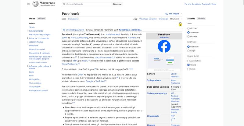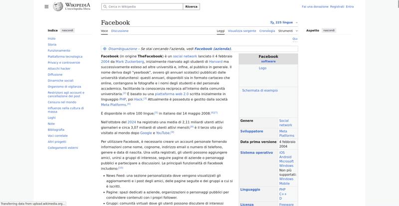 | Offenders: https://upload.wikimedia.org/wikipedia/commons/thumb/a/a5/Semi-protection-shackl...le-itwiki.svg.png https://upload.wikimedia.org/wikipedia/commons/thumb/b/bc/Nota_disambigua.svg/20...isambigua.svg.png https://upload.wikimedia.org/wikipedia/commons/thumb/b/b9/2023_Facebook_icon.svg...book_icon.svg.png https://upload.wikimedia.org/wikipedia/commons/thumb/6/69/Screen_of_Facebook_%28...ebook_%282%29.PNG https://upload.wikimedia.org/wikipedia/commons/thumb/e/ef/MarkZuckerberg.jpg/250...arkZuckerberg.jpg https://upload.wikimedia.org/wikipedia/commons/thumb/4/49/Sean_Parker.jpg/250px-Sean_Parker.jpg https://upload.wikimedia.org/wikipedia/commons/thumb/8/87/Magnifying_glass_icon_...icon_mgx2.svg.png https://upload.wikimedia.org/wikipedia/commons/thumb/f/f7/Social_networks.jpg/50...cial_networks.jpg https://upload.wikimedia.org/wikipedia/commons/thumb/c/c5/Local-important.svg/40...important.svg.png https://upload.wikimedia.org/wikipedia/commons/thumb/c/ce/Old-Facebook-Logo.jpg/...Facebook-Logo.jpg https://upload.wikimedia.org/wikipedia/commons/thumb/f/fd/Facebook-reversed.svg/...-reversed.svg.png https://upload.wikimedia.org/wikipedia/commons/thumb/8/87/Facebook_Logo_%282015%...%29_light.svg.png https://upload.wikimedia.org/wikipedia/commons/thumb/8/89/Facebook_Logo_%282019%...282019%29.svg.png https://upload.wikimedia.org/wikipedia/commons/thumb/9/93/Facebook_logo_%282023%...282023%29.svg.png https://upload.wikimedia.org/wikipedia/commons/thumb/f/fa/Wikiquote-logo.svg/20p...uote-logo.svg.png https://upload.wikimedia.org/wikipedia/commons/thumb/4/4a/Commons-logo.svg/20px-Commons-logo.svg.png https://upload.wikimedia.org/wikipedia/commons/thumb/2/24/Wikinews-logo.svg/20px...news-logo.svg.png https://upload.wikimedia.org/wikipedia/commons/thumb/7/73/Blue_pencil.svg/20px-Blue_pencil.svg.png https://upload.wikimedia.org/wikipedia/commons/thumb/7/7b/Meta_Platforms_Inc._lo...Inc._logo.svg.png https://upload.wikimedia.org/wikipedia/commons/thumb/7/70/Applications-internet....-internet.svg.png https://upload.wikimedia.org/wikipedia/commons/thumb/0/0f/People.svg/40px-People.svg.png https://en.wikipedia.org/w/index.php...a.org/w/index.php https://en.wikipedia.org/w/index.php...a.org/w/index.php https://it.wikipedia.org/wiki/Special:CentralAutoLogin/start?useformat=desktop&type=script&usesul3=1 https://auth.wikimedia.org/metawiki/wiki/Special:CentralAutoLogin/checkLoggedIn...gin/checkLoggedIn |