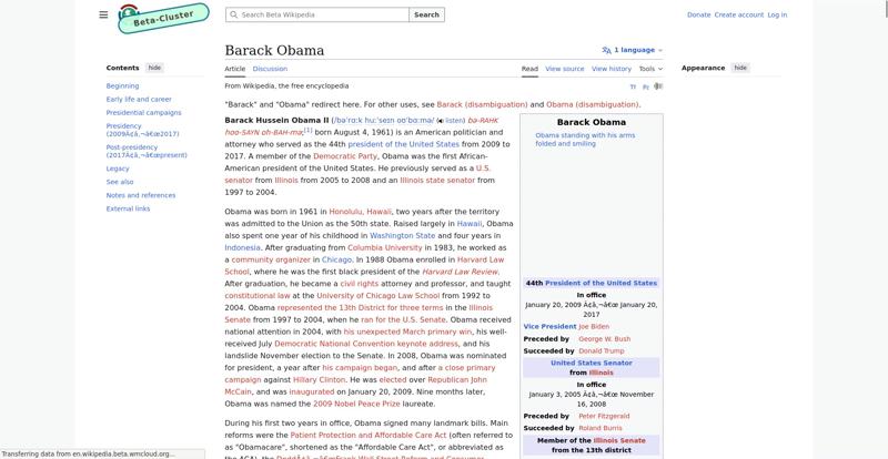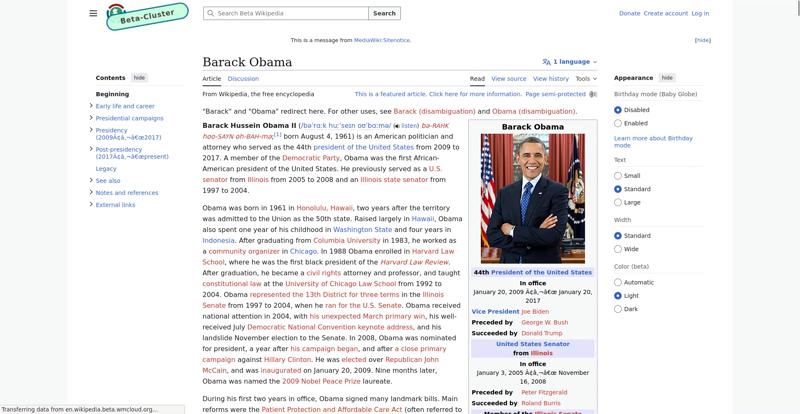 | Offenders: https://upload.wikimedia.org/wikipedia/commons/thumb/4/47/Sound-icon.svg/20px-Sound-icon.svg.png https://upload.wikimedia.org/wikipedia/commons/thumb/3/36/Seal_of_the_President_...ed_States.svg.png https://upload.wikimedia.org/wikipedia/commons/thumb/b/b8/Barack_Obama_and_Bill_..._Bill_Clinton.jpg https://upload.wikimedia.org/wikipedia/commons/thumb/0/01/A_coloured_voting_box....oting_box.svg.png https://upload.wikimedia.org/wikipedia/commons/thumb/8/8a/Loudspeaker.svg/20px-Loudspeaker.svg.png https://upload.wikimedia.org/wikipedia/commons/thumb/a/a5/20090124_WeeklyAddress...lyAddress.ogv.jpg https://upload.wikimedia.beta.wmcloud.org/wikipedia/commons/thumb/7/73/Blue_penc...ue_pencil.svg.png https://upload.wikimedia.org/wikipedia/commons/thumb/8/89/Symbol_book_class2.svg...ok_class2.svg.png https://upload.wikimedia.org/wikipedia/commons/thumb/4/48/Folder_Hexagonal_Icon....onal_Icon.svg.png https://upload.wikimedia.org/wikipedia/commons/thumb/1/1b/Yellow_flag_waving.svg...ag_waving.svg.png https://upload.wikimedia.org/wikipedia/commons/thumb/f/f0/Seal_of_the_United_Sta...es_Senate.svg.png https://upload.wikimedia.org/wikipedia/commons/thumb/4/4a/Commons-logo.svg/40px-Commons-logo.svg.png https://upload.wikimedia.org/wikipedia/commons/thumb/2/24/Wikinews-logo.svg/40px...news-logo.svg.png https://upload.wikimedia.org/wikipedia/commons/thumb/f/fa/Wikiquote-logo.svg/40p...uote-logo.svg.png https://upload.wikimedia.org/wikipedia/commons/thumb/4/4c/Wikisource-logo.svg/40...urce-logo.svg.png https://upload.wikimedia.beta.wmcloud.org/wikipedia/commons/thumb/f/ff/Wikidata-...data-logo.svg.png https://upload.wikimedia.org/wikipedia/commons/thumb/4/47/Sound-icon.svg/20px-Sound-icon.svg.png https://upload.wikimedia.org/wikipedia/commons/thumb/3/36/Seal_of_the_President_...ed_States.svg.png https://upload.wikimedia.org/wikipedia/commons/thumb/8/8d/President_Barack_Obama..._Barack_Obama.jpg https://upload.wikimedia.org/wikipedia/commons/thumb/1/11/Barack_Obama_signature...signature.svg.png https://upload.wikimedia.org/wikipedia/commons/thumb/b/b8/Barack_Obama_and_Bill_..._Bill_Clinton.jpg https://upload.wikimedia.org/wikipedia/commons/thumb/0/01/A_coloured_voting_box....oting_box.svg.png https://upload.wikimedia.org/wikipedia/commons/thumb/8/8a/Loudspeaker.svg/20px-Loudspeaker.svg.png https://upload.wikimedia.org/wikipedia/commons/thumb/2/26/Obama_family_portrait_...he_Green_Room.jpg https://upload.wikimedia.org/wikipedia/commons/thumb/2/22/BlackhawksWhiteHouse20...hiteHouse2010.jpg https://upload.wikimedia.org/wikipedia/commons/thumb/c/ca/Barack_Obama_playing_b...secretaries_2.jpg https://upload.wikimedia.org/wikipedia/commons/thumb/7/77/DIG13623-230.jpg/250px-DIG13623-230.jpg https://upload.wikimedia.org/wikipedia/commons/thumb/3/3d/Obamas_at_church_on_In...tion_Day_2013.jpg https://upload.wikimedia.org/wikipedia/commons/thumb/1/1b/Nuvola_apps_kaboodle.s..._kaboodle.svg.png https://upload.wikimedia.org/wikipedia/commons/thumb/b/b6/Obamamiltondavis1.jpg/...amiltondavis1.jpg https://upload.wikimedia.org/wikipedia/commons/thumb/5/50/2004_Illinois_Senate_r...e_results.svg.png https://upload.wikimedia.org/wikipedia/commons/thumb/f/f1/BarackObamaportrait.jp...Obamaportrait.jpg https://upload.wikimedia.org/wikipedia/commons/thumb/7/79/Lugar-Obama.jpg/250px-Lugar-Obama.jpg https://upload.wikimedia.org/wikipedia/commons/thumb/7/70/Barack_Obama_Iraq_2006...ama_Iraq_2006.jpg https://upload.wikimedia.org/wikipedia/commons/thumb/9/99/Flickr_Obama_Springfie...pringfield_01.jpg https://upload.wikimedia.org/wikipedia/commons/thumb/a/a2/President_George_W._Bu...n_Oval_Office.jpg https://upload.wikimedia.org/wikipedia/commons/thumb/2/24/ElectoralCollege2008.s...llege2008.svg.png https://upload.wikimedia.org/wikipedia/commons/thumb/3/33/P112912PS-0444_-_Presi...Office_-_crop.jpg https://upload.wikimedia.org/wikipedia/commons/thumb/4/44/ElectoralCollege2012.s...llege2012.svg.png https://upload.wikimedia.org/wikipedia/commons/thumb/d/d7/US_President_Barack_Ob...e_-_2009Jan20.jpg https://upload.wikimedia.org/wikipedia/commons/thumb/3/32/Barack_Obama_addresses...ss_2009-02-24.jpg https://upload.wikimedia.org/wikipedia/commons/thumb/6/63/Obama_cabinet_meeting_...eting_2009-11.jpg https://upload.wikimedia.org/wikipedia/commons/thumb/8/86/White_House_rainbow_fo...-sex_marriage.jpg https://upload.wikimedia.org/wikipedia/commons/thumb/f/fc/U.S._Total_Deficits_vs...ses_2001-2010.png https://upload.wikimedia.org/wikipedia/commons/thumb/2/25/US_Employment_Statisti...tatistics.svg.png https://upload.wikimedia.org/wikipedia/commons/thumb/6/63/Obama-venice-la.jpg/25...ama-venice-la.jpg https://upload.wikimedia.org/wikipedia/commons/thumb/f/f5/Obama_signs_health_car...care-20100323.jpg https://upload.wikimedia.org/wikipedia/commons/thumb/7/79/PPACA_Premium_Chart.jp...Premium_Chart.jpg https://upload.wikimedia.org/wikipedia/commons/thumb/8/84/Percentage_of_Individu...%2C_1963-2015.png https://upload.wikimedia.org/wikipedia/commons/thumb/4/4b/Barack_Obama_visiting_...rora_shooting.jpg https://upload.wikimedia.org/wikipedia/commons/thumb/4/42/Barack_Obama_at_Cairo_...rsity_cropped.jpg https://upload.wikimedia.org/wikipedia/commons/thumb/8/83/Barack_Obama_foreign_t...ign_trips.svg.png https://en.wikipedia.beta.wmcloud.org/wiki/Special:CentralAutoLogin/start...alAutoLogin/start https://meta.wikimedia.beta.wmcloud.org/w/index.php...d.org/w/index.php https://upload.wikimedia.org/wikipedia/commons/thumb/a/a5/20090124_WeeklyAddress...lyAddress.ogv.jpg https://upload.wikimedia.org/wikipedia/commons/thumb/1/12/President_Obama_on_Dea...bin_Laden.ogv.jpg https://auth.wikimedia.beta.wmcloud.org/metawiki/wiki/Special:CentralAutoLogin/c...gin/checkLoggedIn |